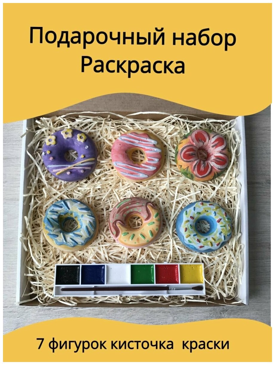 10 цен на Подарочный набор объемных раскрасок пончики + медвежонок В подарок! / многоразовая 3D развивашка фигурки 7 шт, кисточка, краски / Творческая мастерская Сделай Сам