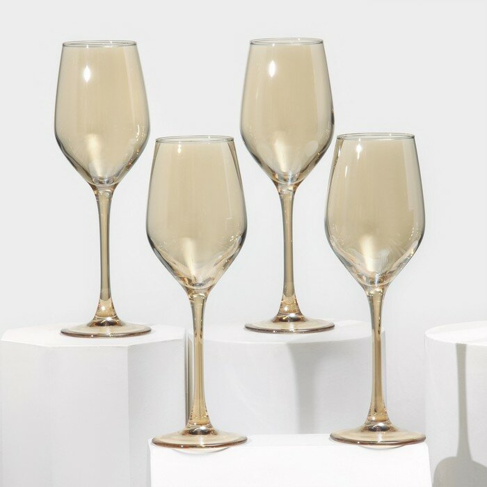 Набор стеклянных бокалов для вина «Золотой мёд», 270 мл, 4 шт, цвет золотой информация: