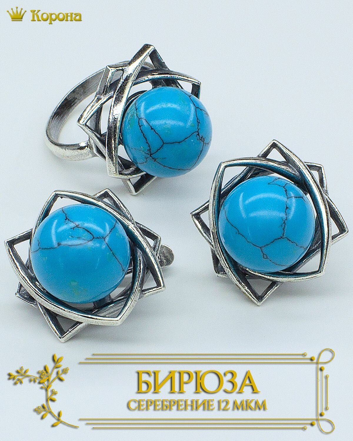 Комплект посеребренных украшений (серьги и кольцо) с бирюзой 19,5 информация: