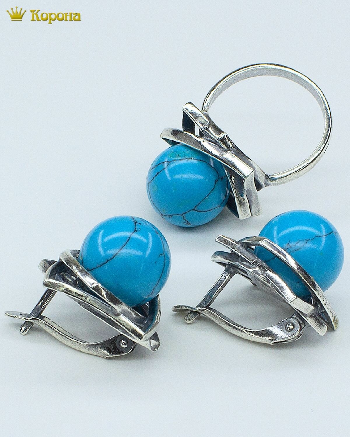 Комплект посеребренных украшений (серьги и кольцо) с бирюзой 20,5 информация: