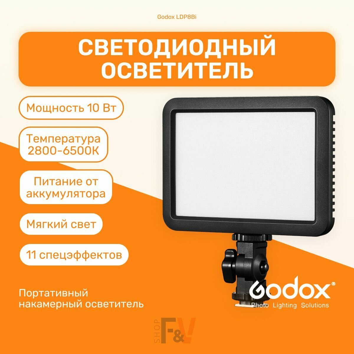 Осветитель светодиодный Godox LDP8Bi накамерный, лампа для фотосъемки, свет для фото, для видео, видеосвет информация: