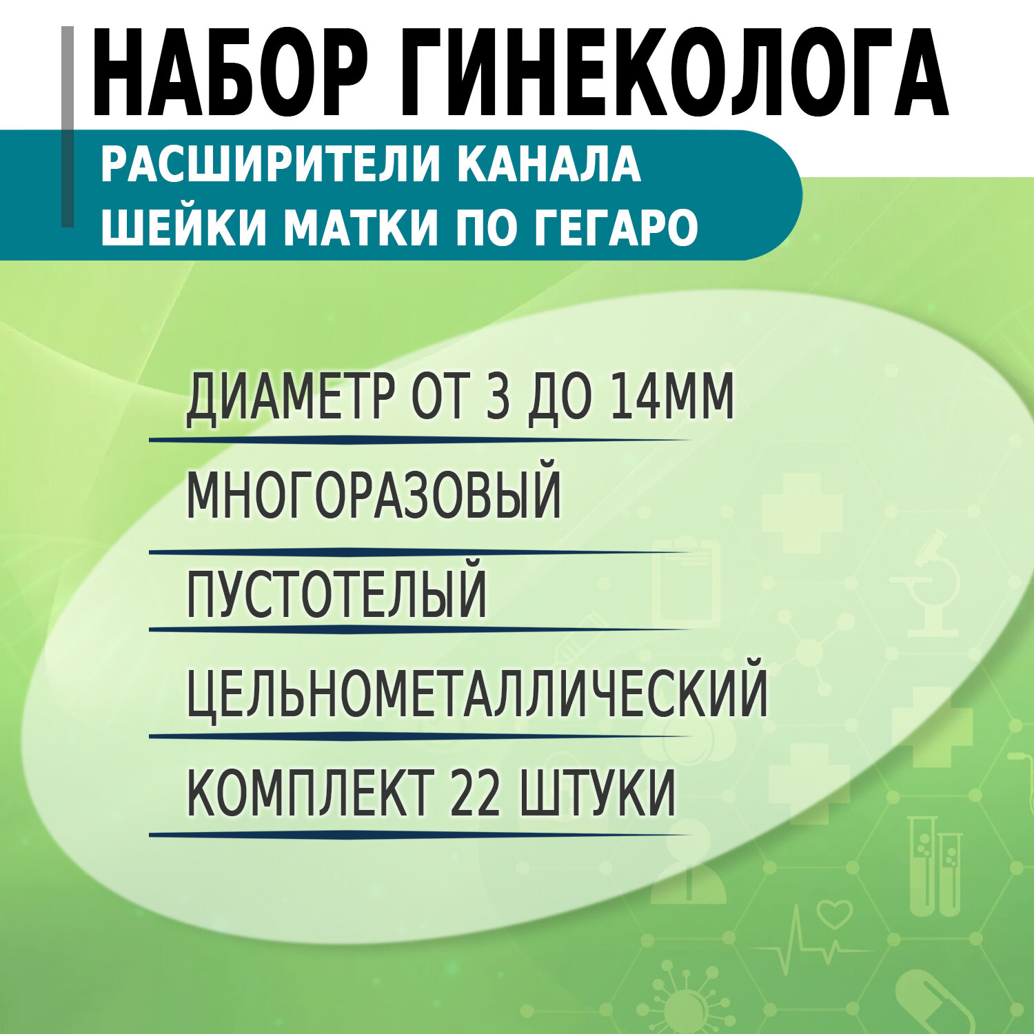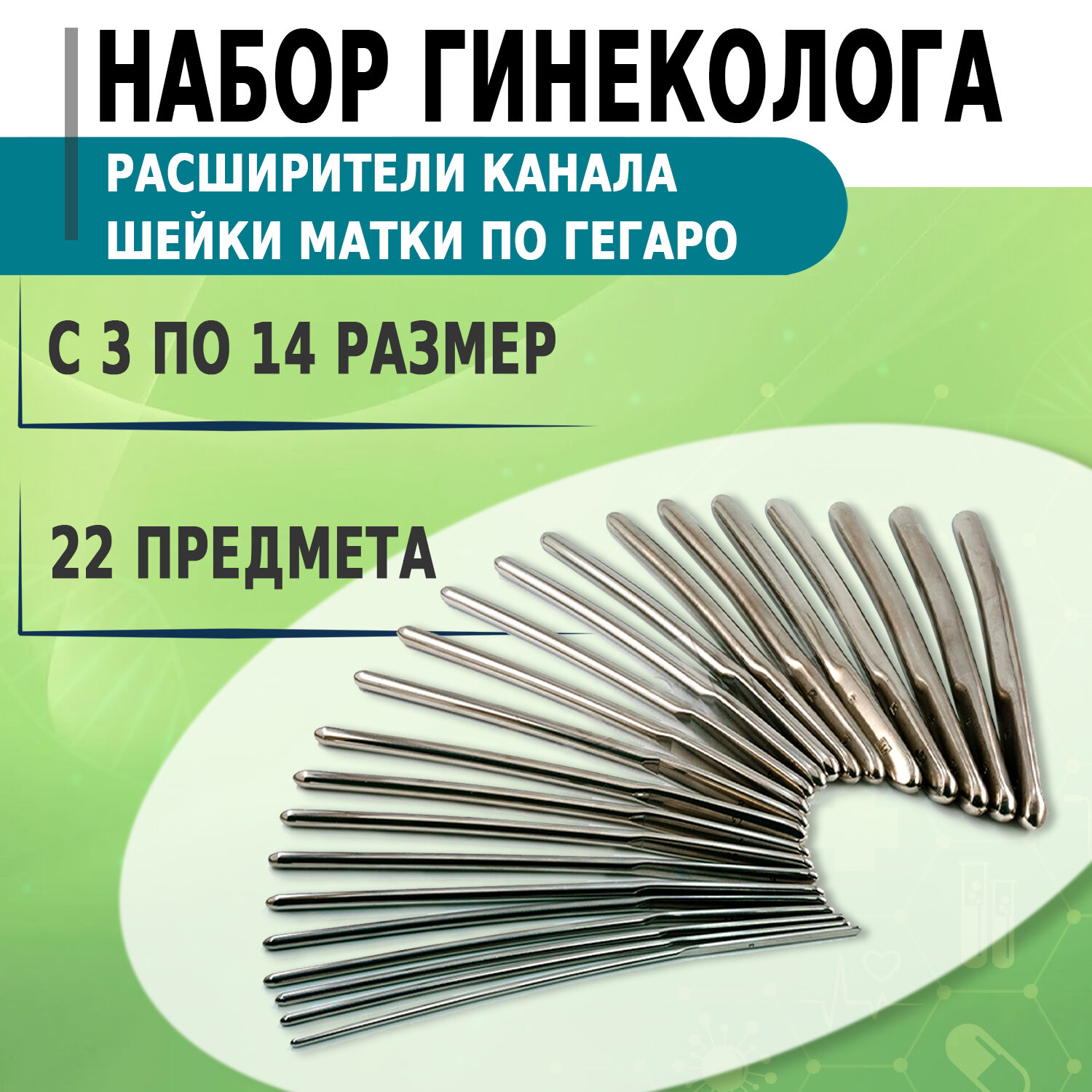 10 цен на Набор расширителей канала шейки матки по Гегаро № с 3 по 14 (22шт)/ Гинекологические инструменты