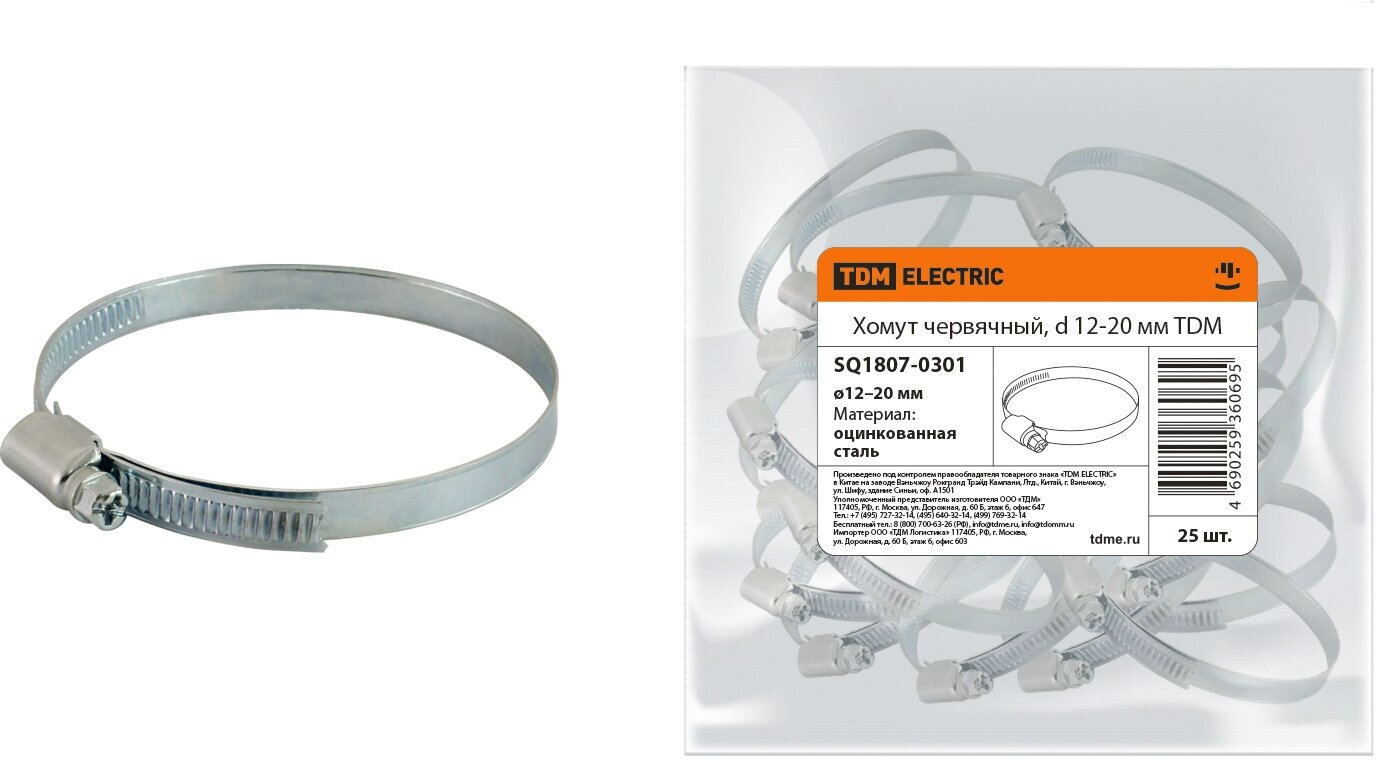 Хомут червячный, d 12-20 мм TDM SQ1807-0301 информация:
