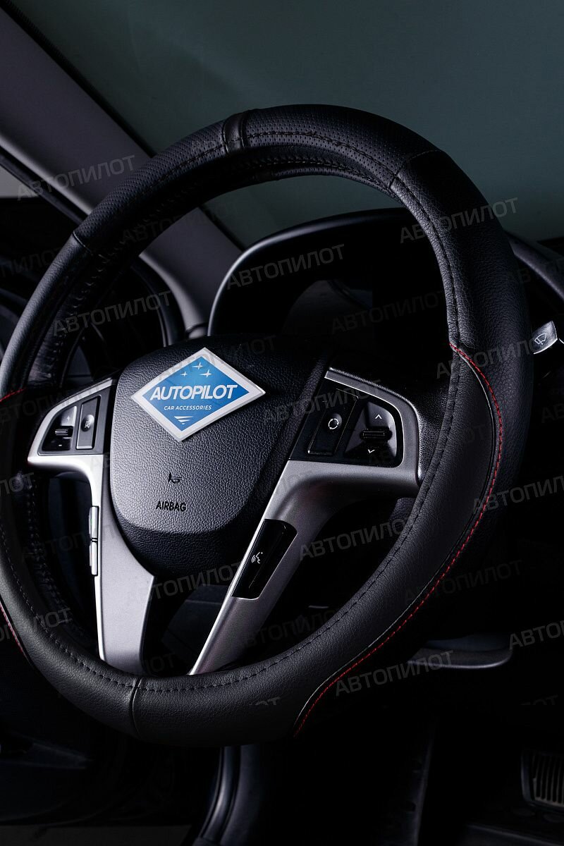 Оплетка, чехол (накидка) на руль Лада Ларгус (2012 - 2021) фургон / LADA (ВАЗ) Largus, Экокожа (премиального качества), Черный с красной строчкой информация: