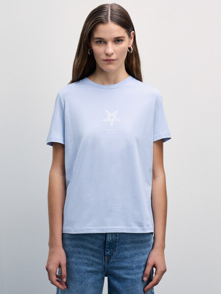 Zarina Футболка прямого кроя с принтом, цвет Серо-голубой, размер XS (RU 42), 4225519419-161 714 ₽