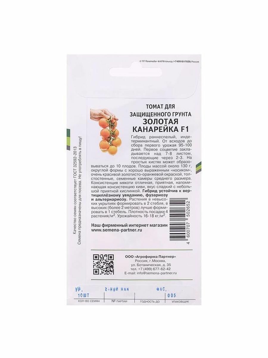 1 упаковок Семена Томат Золотая Канарейка, F1, 10 шт информация: