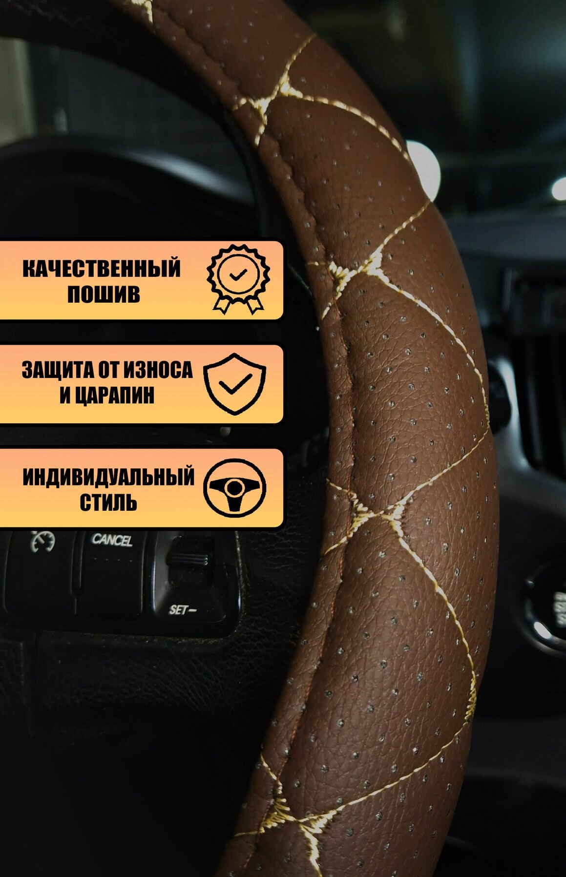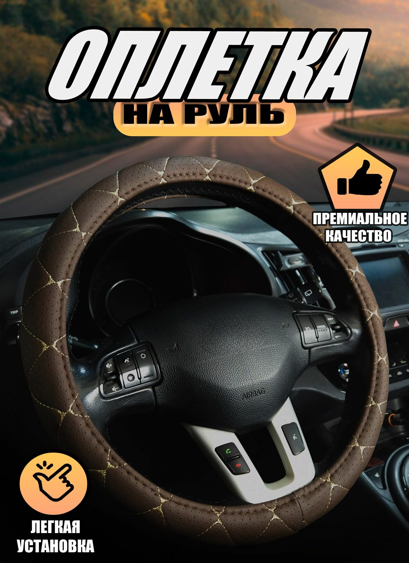 10 цен на Оплетка, чехол (накидка) на руль Шевроле Авео (2006 - 2012) хэтчбек 3 двери / Chevrolet Aveo, экокожа, Шоколадный