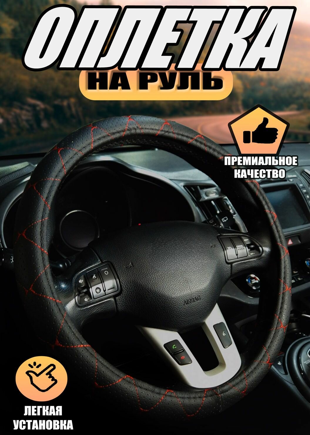 Отзывы на Оплетка, чехол (накидка) на руль Киа Соренто (2014 - 2017) внедорожник 5 дверей / Kia Sorento, экокожа, Черный с красной строчкой