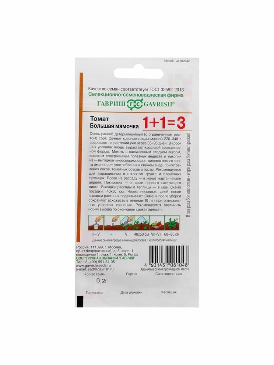 10 цен на Семена Томат Большая мамочка, 1+1, 0,2 г