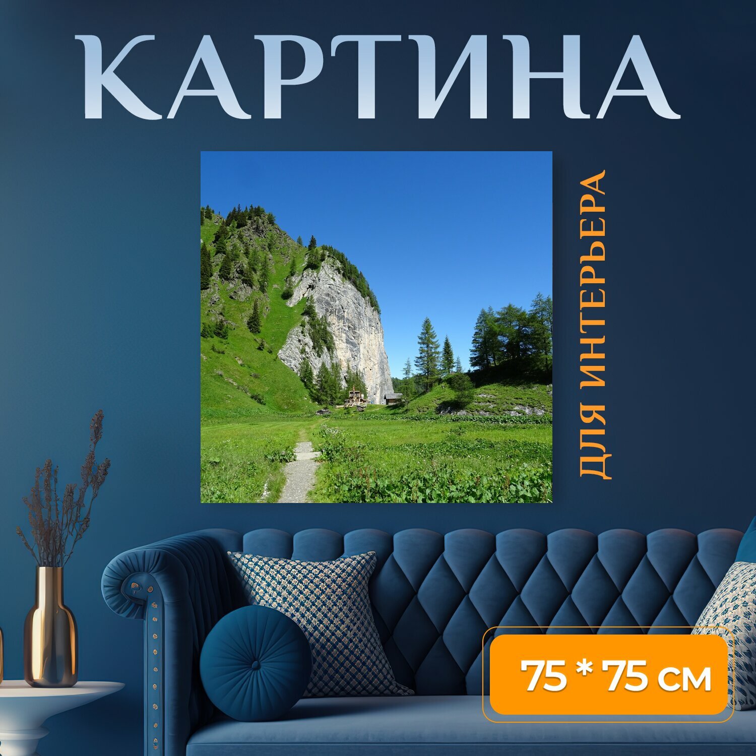 10 цен на Картина на холсте "Тропа, пейзаж, луг" на подрамнике 75х75 см. для интерьера