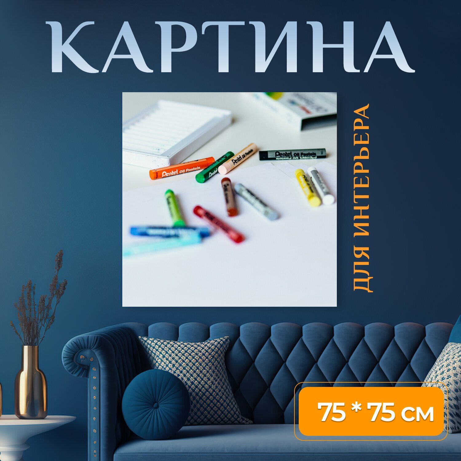Картина на холсте "Мелки, цвет, красочный" на подрамнике 75х75 см. для интерьера информация: