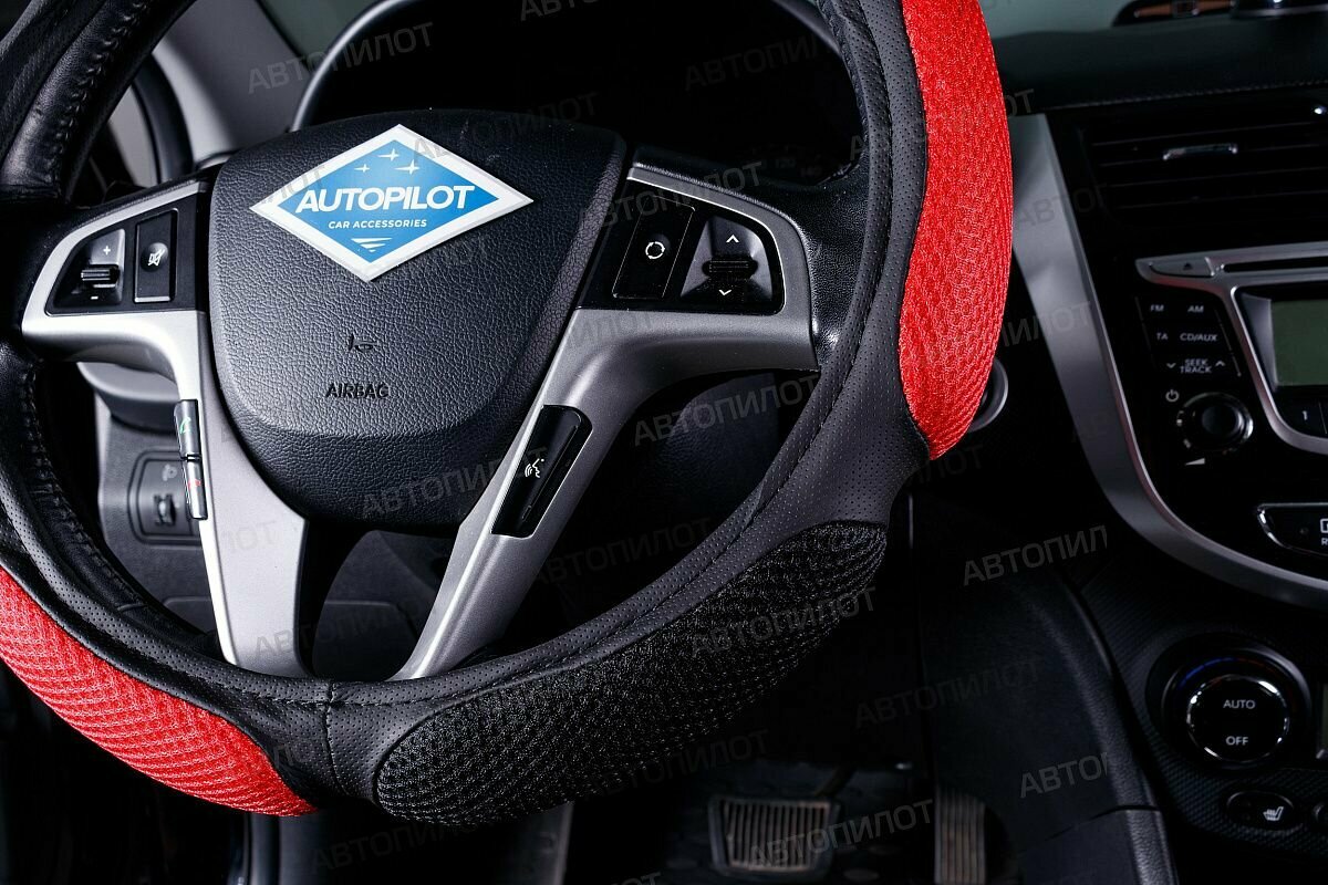 Оплетка на руль Ленд Ровер Рендж Ровер Эвок (2015 - 2018) внедорожник 3 двери / Land Rover Range Rover Evoque, экокожа и спонж (высокого качества), Красный и черный информация: