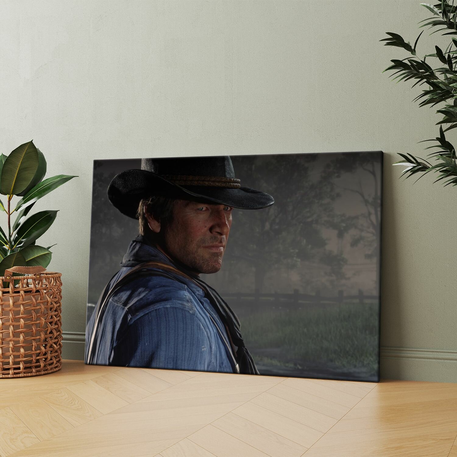 10 цен на Картина на холсте (Мужчина в ковбойской шляпе и синей рубашке) 30x40 см. Интерьерная, на стену.