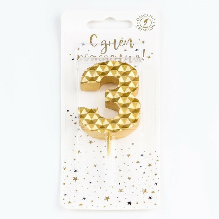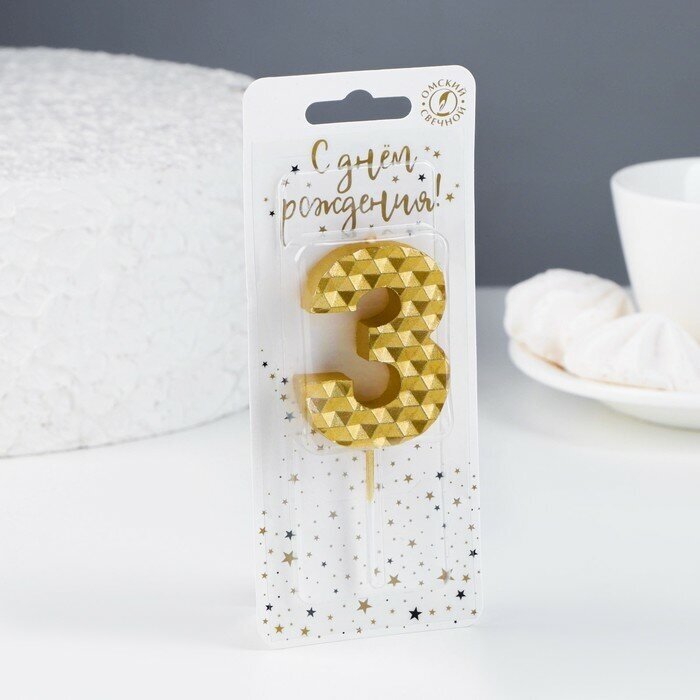 10 цен на Sima-land Свеча в торт на шпажке "Соты", цифра 3, 7 см, золото