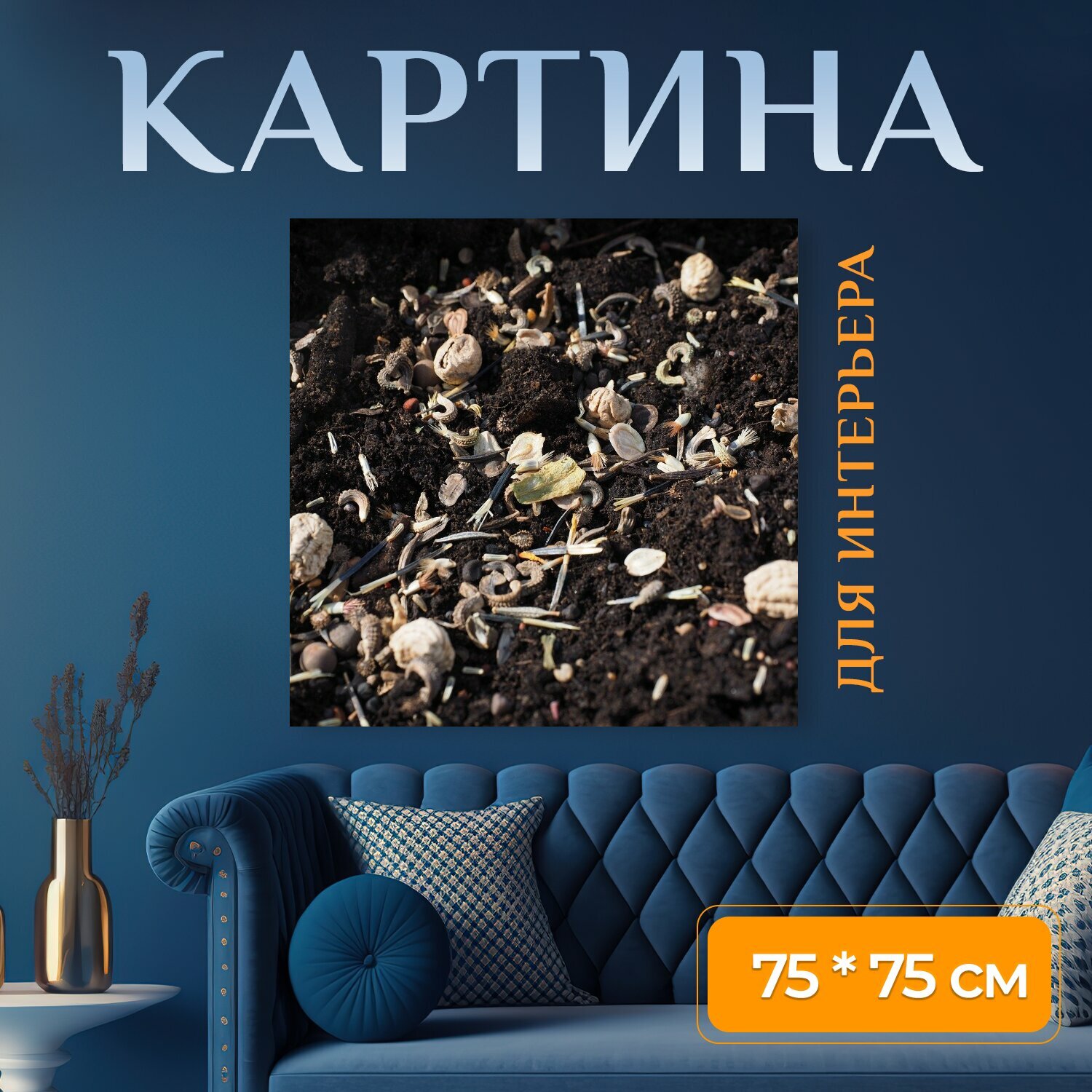 10 цен на Картина на холсте "Семена цветов, семя, посев" на подрамнике 75х75 см. для интерьера