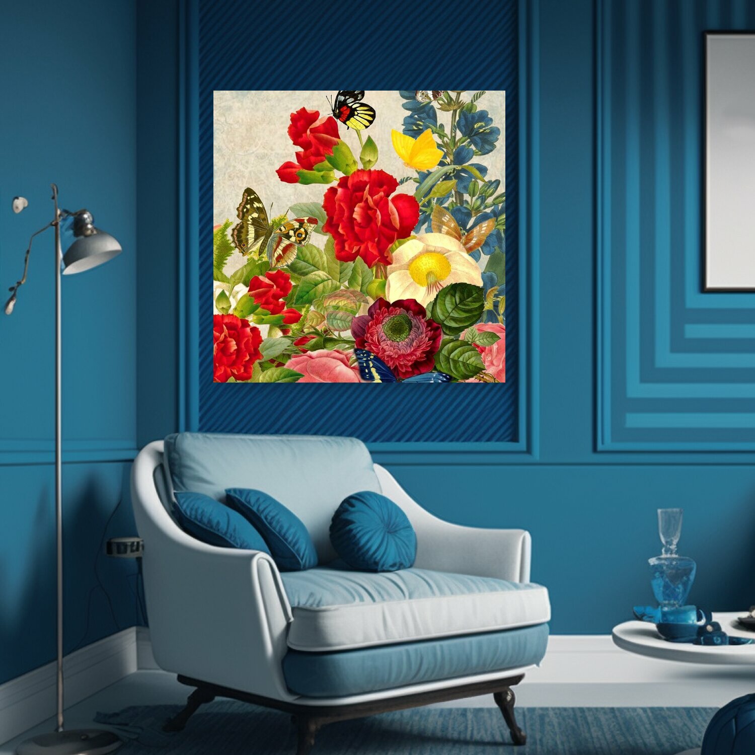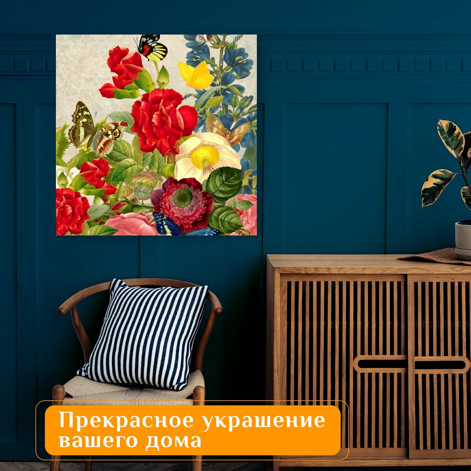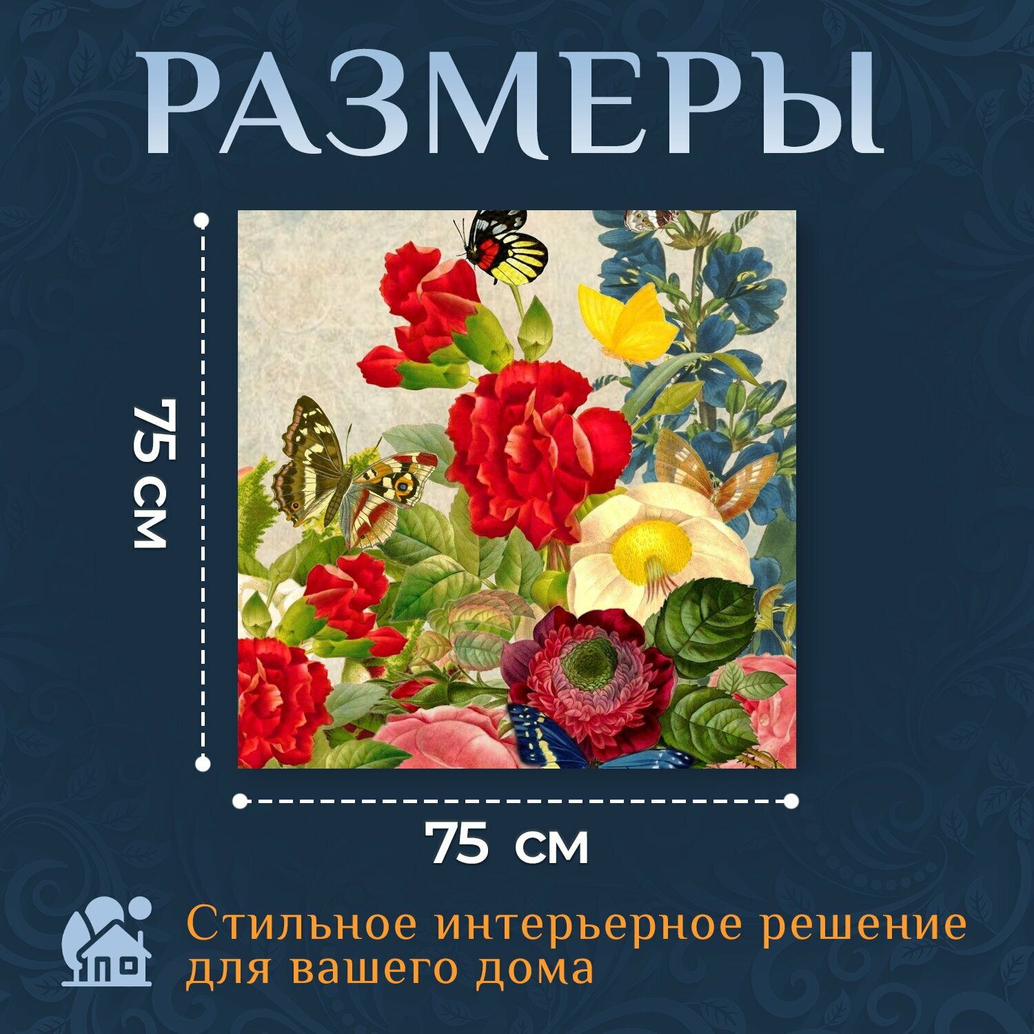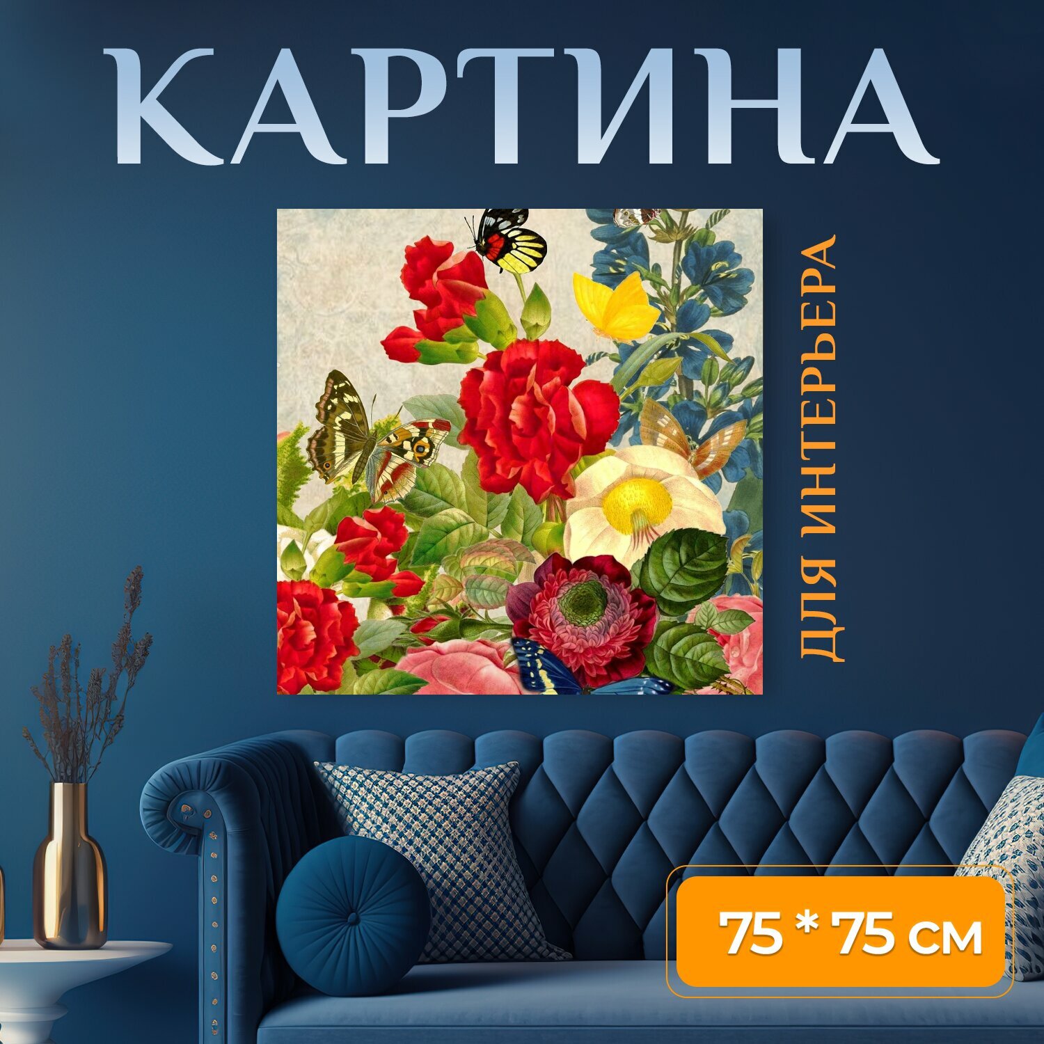 10 цен на Картина на холсте "Винтаж, цветок, бабочка" на подрамнике 75х75 см. для интерьера