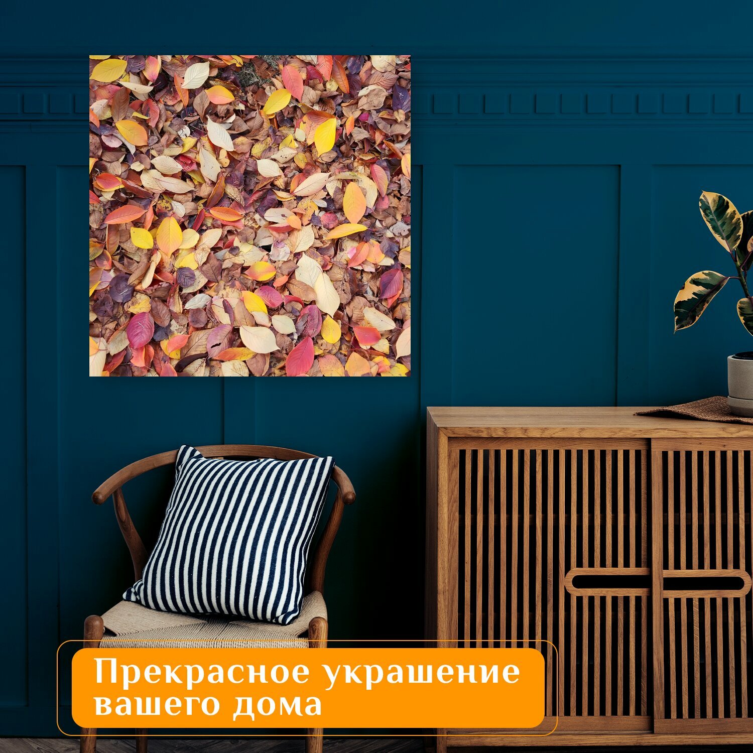 Отзывы на Картина на холсте "Осенний пейзаж, осень, листья" на подрамнике 75х75 см. для интерьера