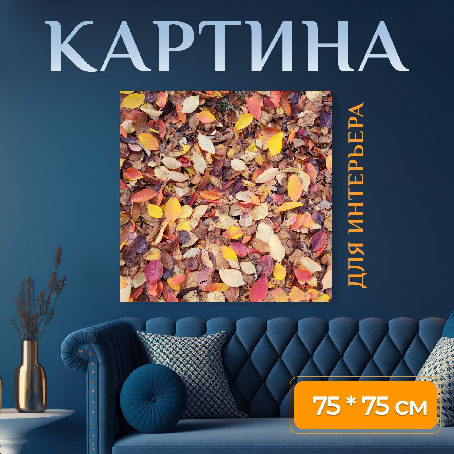 10 цен на Картина на холсте "Осенний пейзаж, осень, листья" на подрамнике 75х75 см. для интерьера