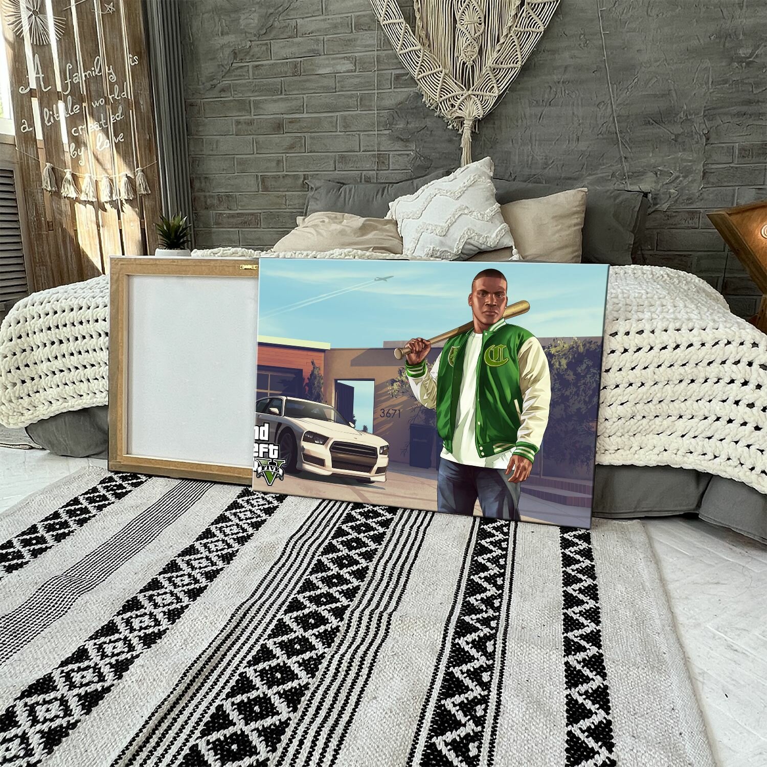 Отзывы на Картина на холсте (Мужчина в зеленой куртке держит бейсбольную биту) 20x30 см. Интерьерная, на стену.