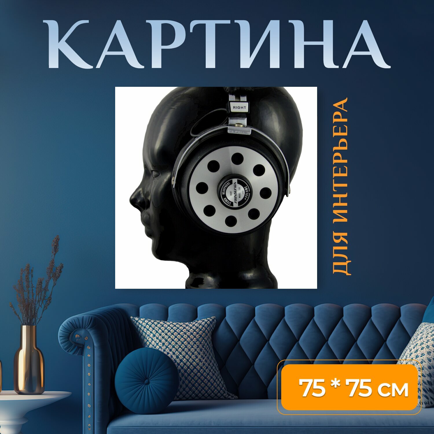 10 цен на Картина на холсте "Руководитель, наушники, стекло" на подрамнике 75х75 см. для интерьера
