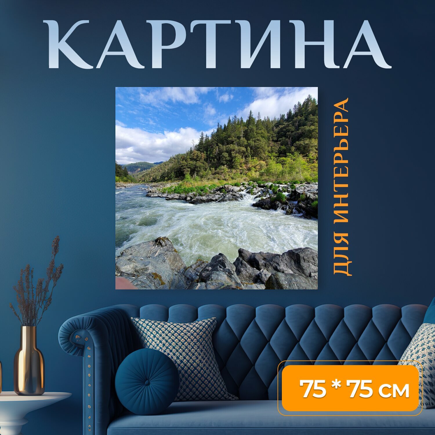 10 цен на Картина на холсте "Река, небо, вода" на подрамнике 75х75 см. для интерьера