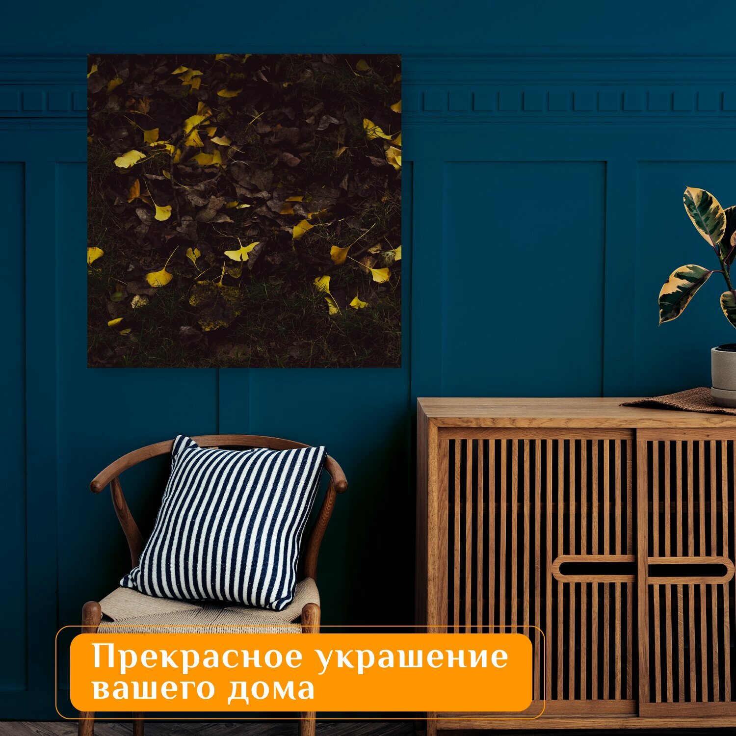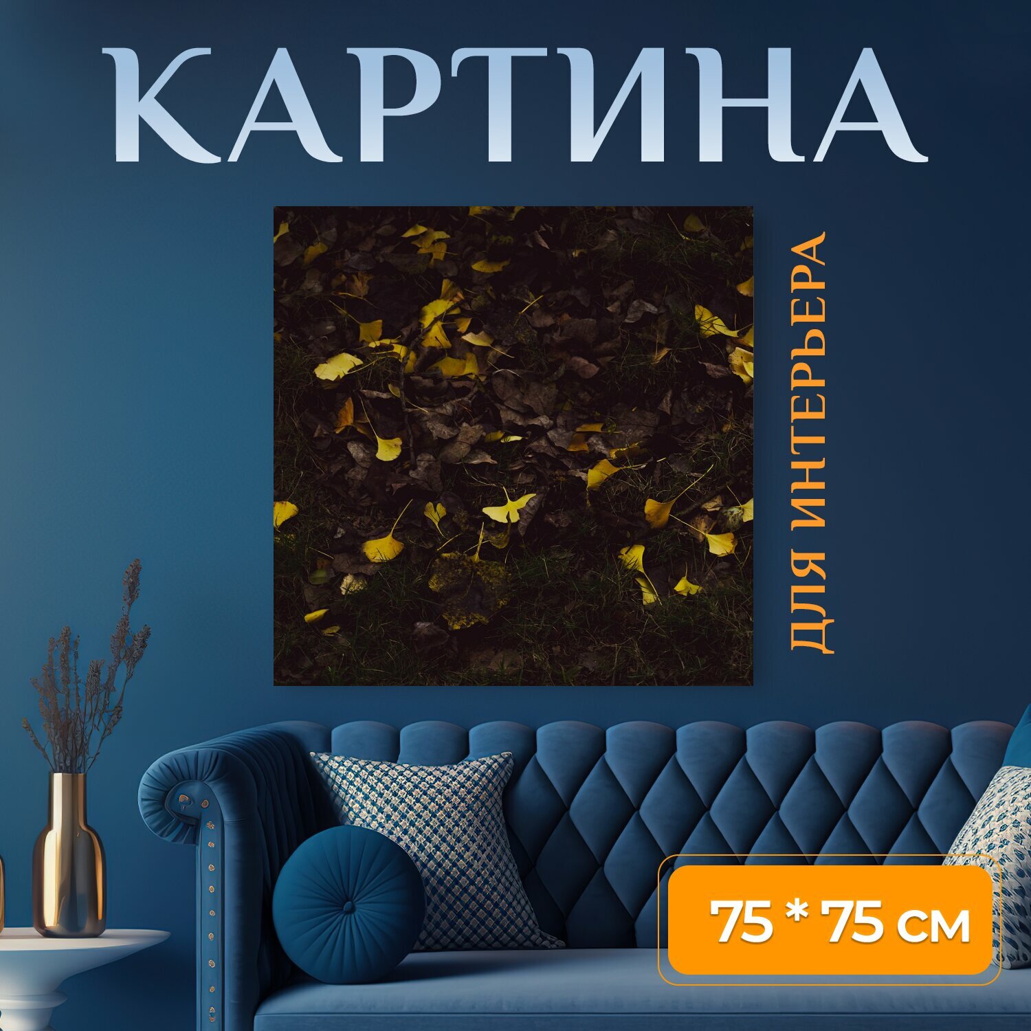 10 цен на Картина на холсте "Листья, листва, земля" на подрамнике 75х75 см. для интерьера
