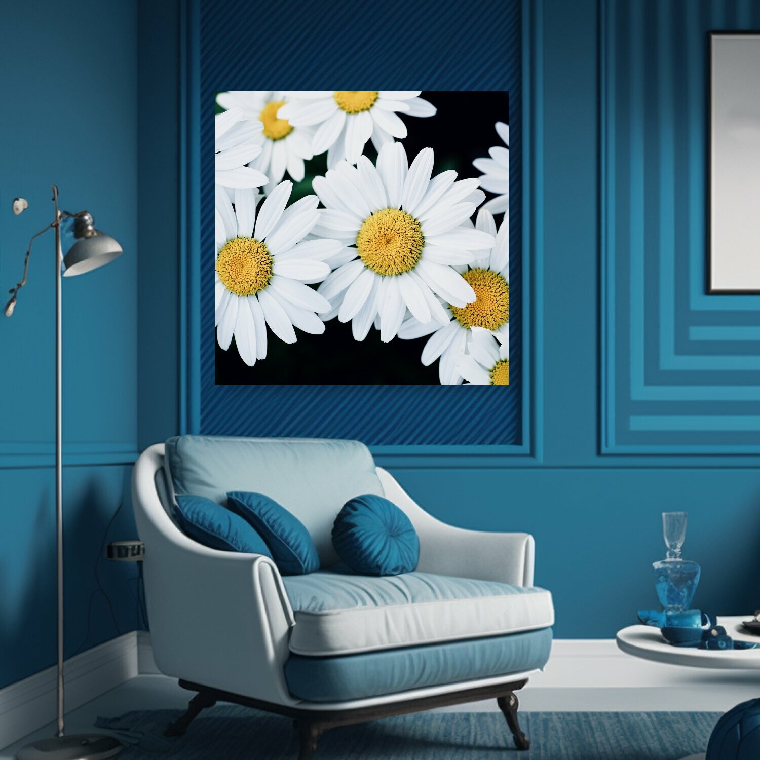 10 цен на Картина на холсте "Маргаритка, цветы, сад" на подрамнике 75х75 см. для интерьера
