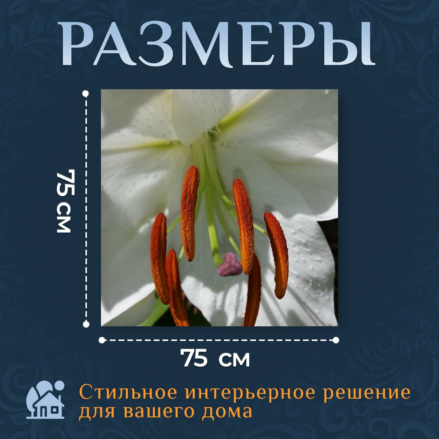 Картина на холсте "Цветок, лили, белый цветок" на подрамнике 75х75 см. для интерьера информация: