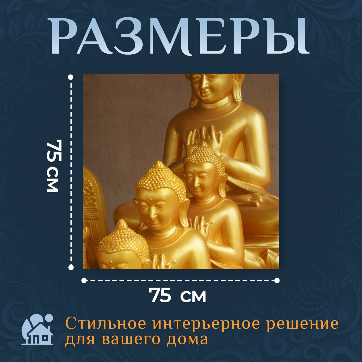 Картина на холсте "Будда, золото, буддизм" на подрамнике 75х75 см. для интерьера информация:
