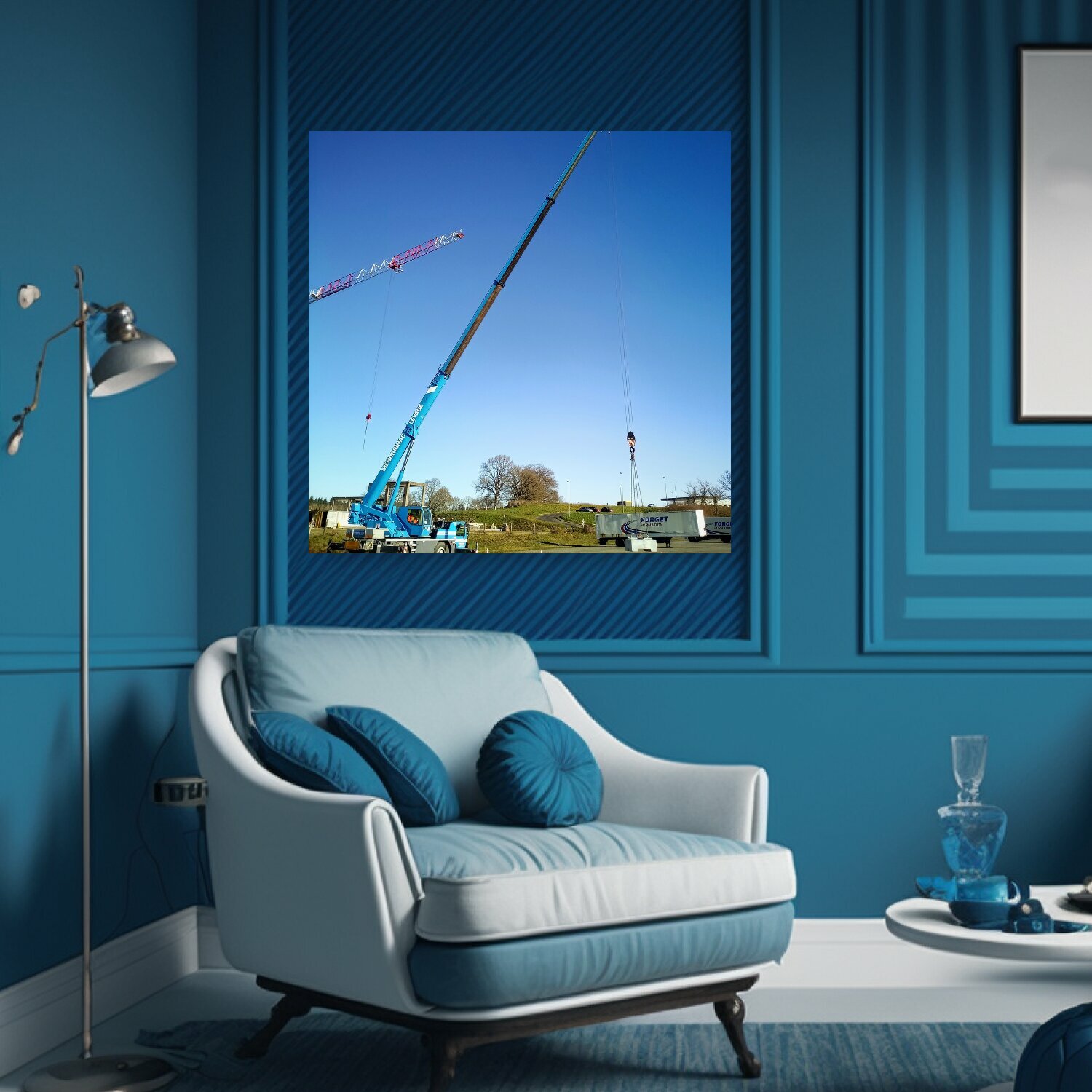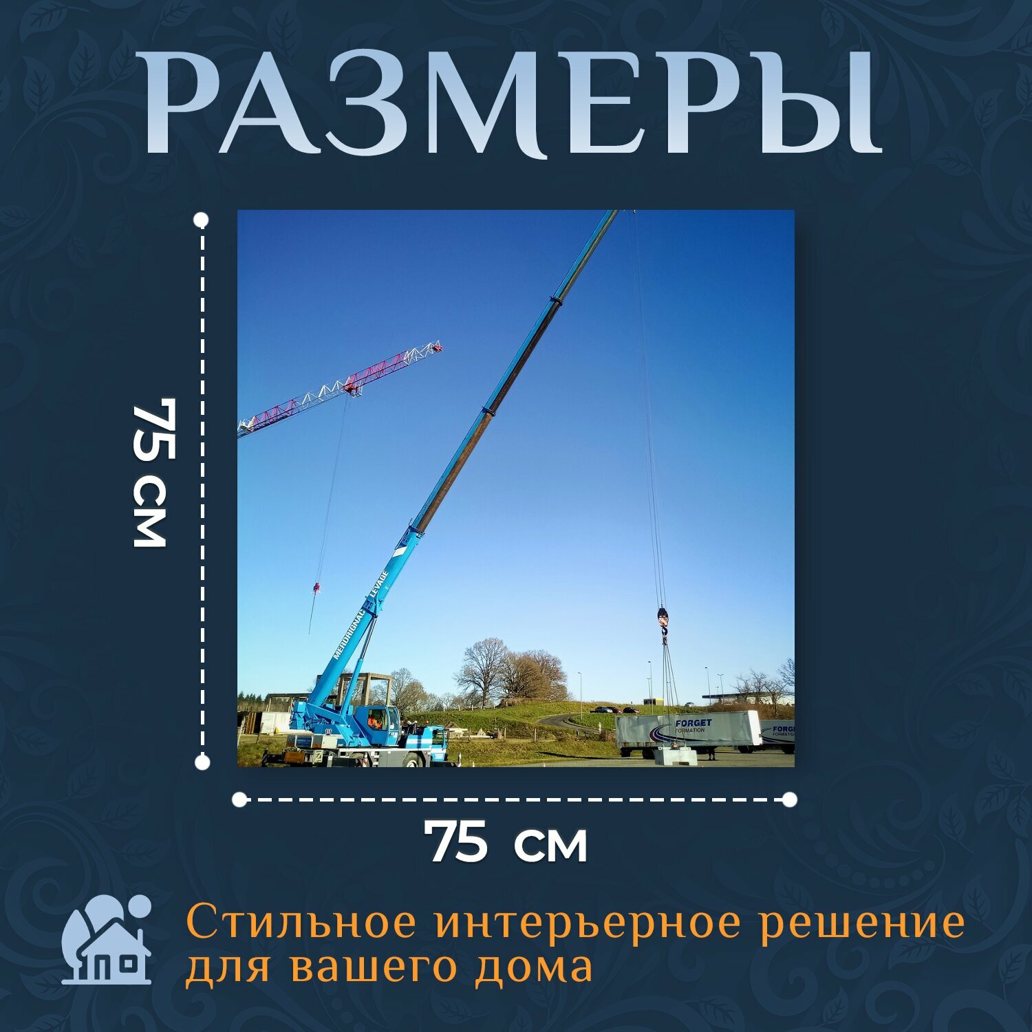 Картина на холсте "Автокран, мобильный кран, гидравлический кран" на подрамнике 75х75 см. для интерьера информация: