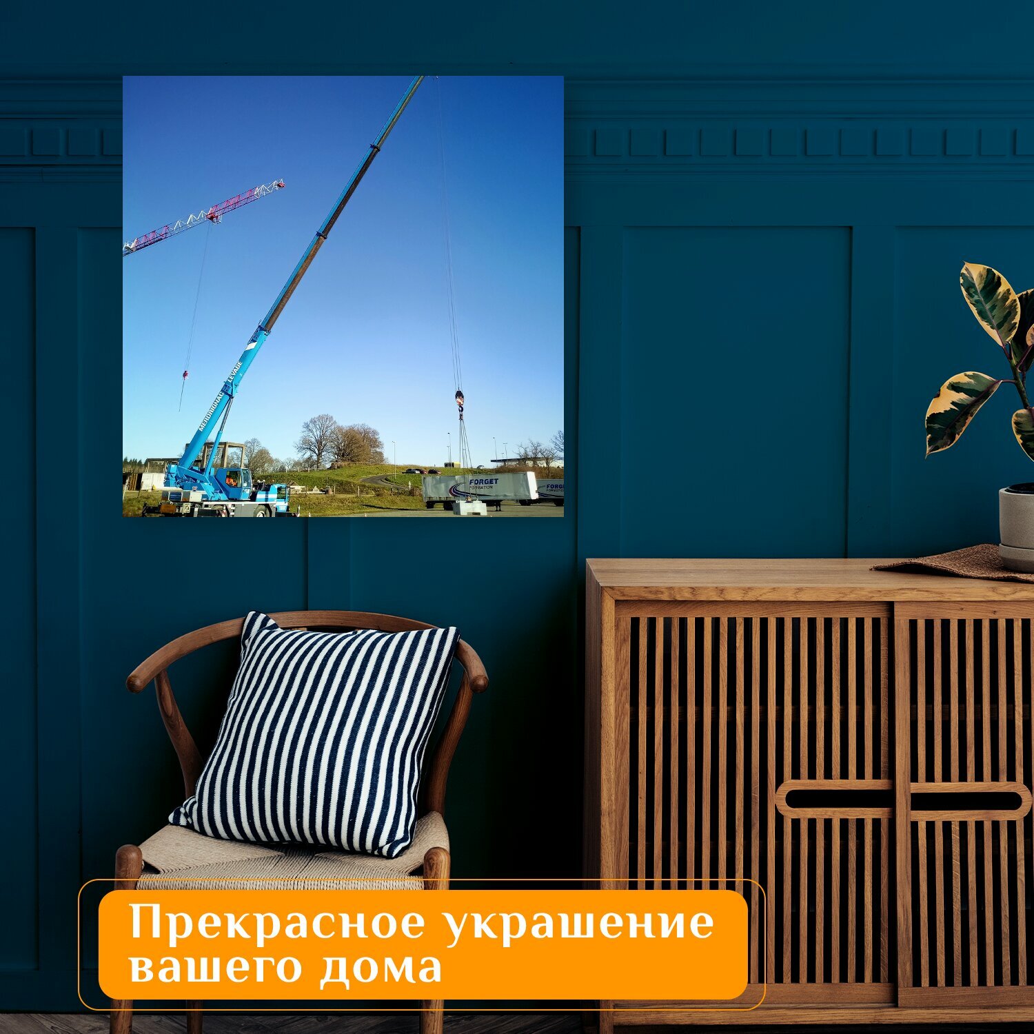 10 цен на Картина на холсте "Автокран, мобильный кран, гидравлический кран" на подрамнике 75х75 см. для интерьера