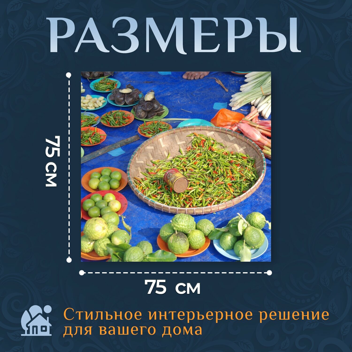 Картина на холсте "Овощи, фасоль, лаймы" на подрамнике 75х75 см. для интерьера информация: