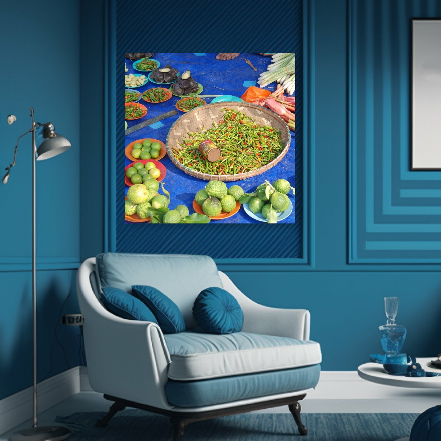 10 цен на Картина на холсте "Овощи, фасоль, лаймы" на подрамнике 75х75 см. для интерьера