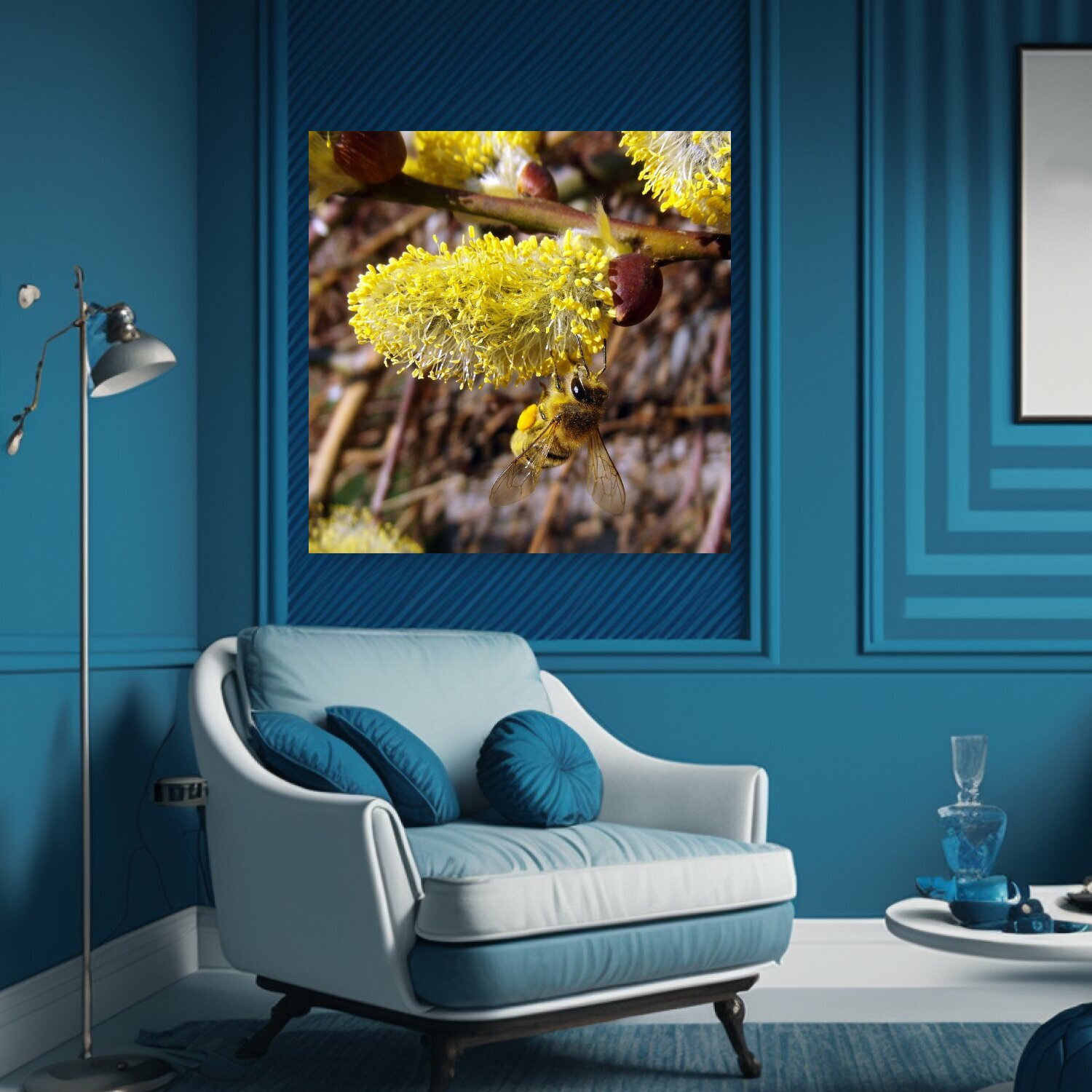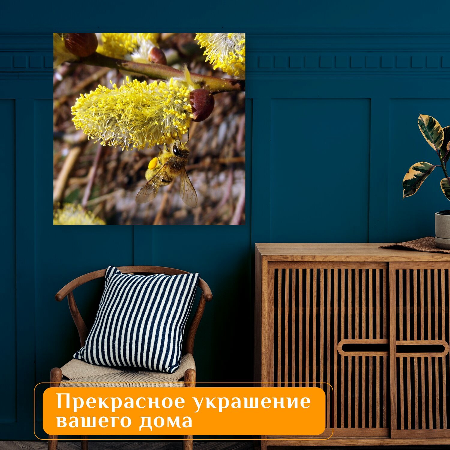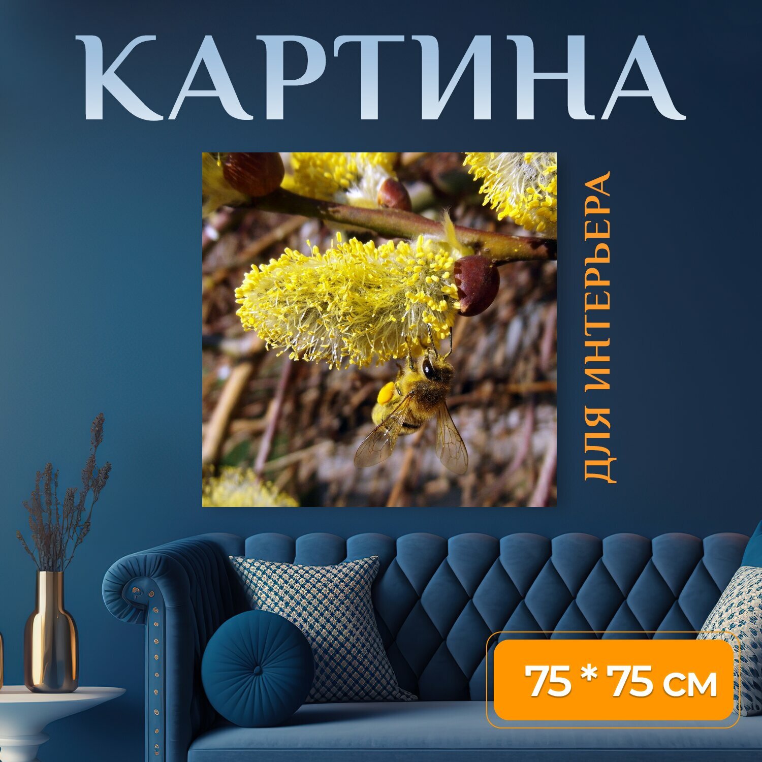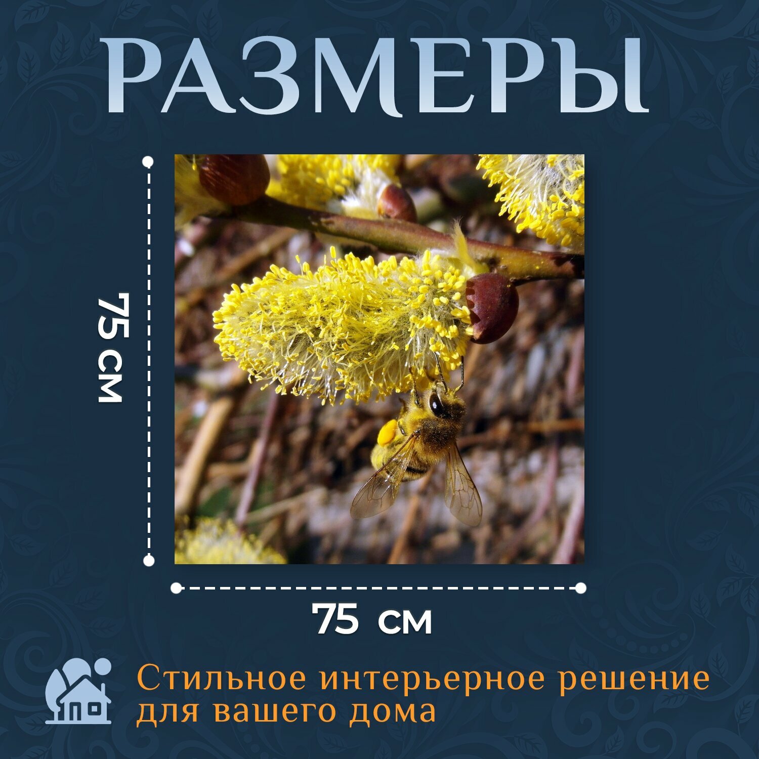 Картина на холсте "Пчела, март, пастбище" на подрамнике 75х75 см. для интерьера информация: