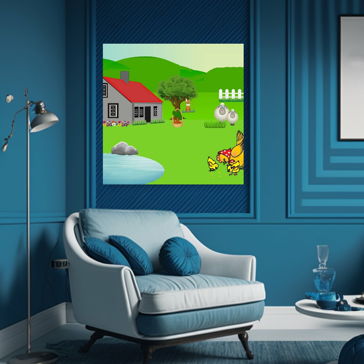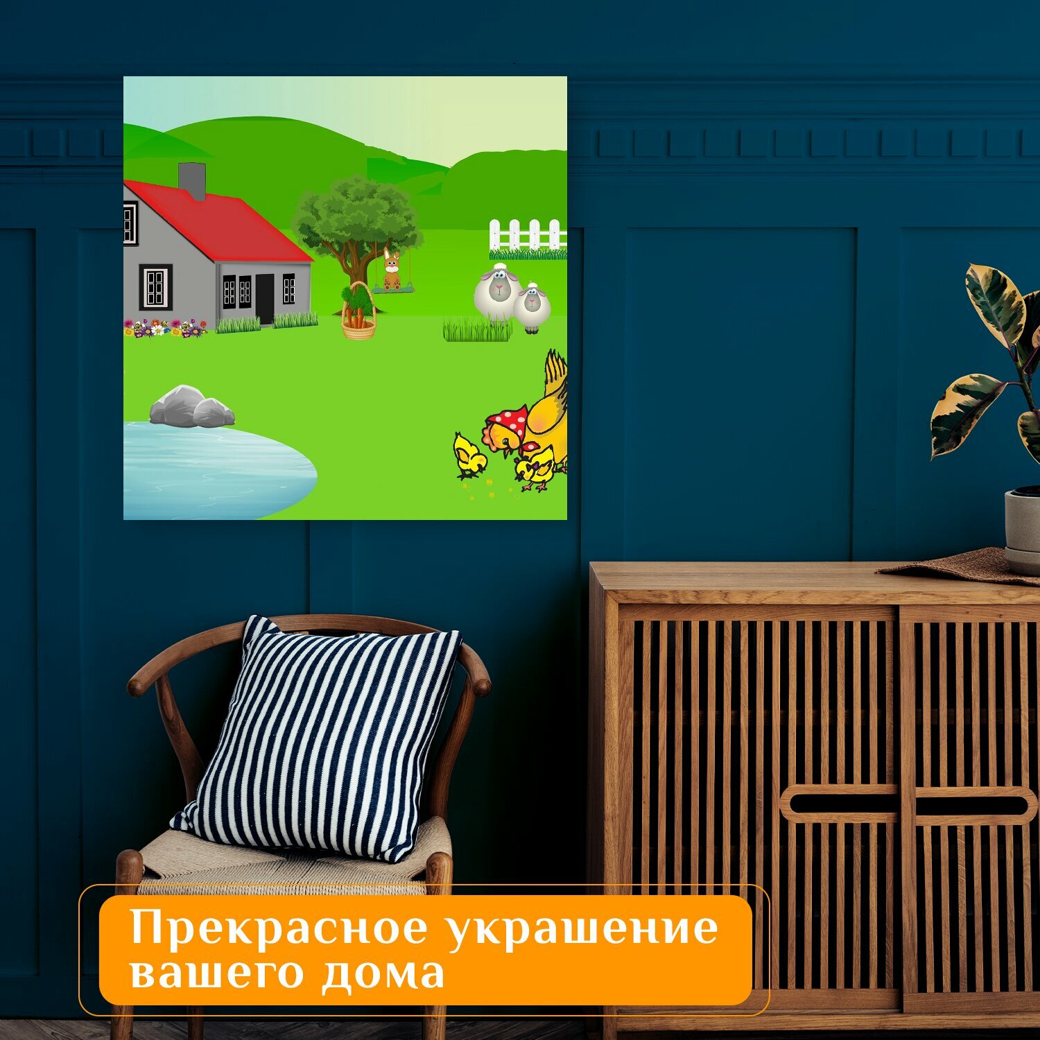 Отзывы на Картина на холсте "Пейзаж, пасхальный, цыплята" на подрамнике 75х75 см. для интерьера