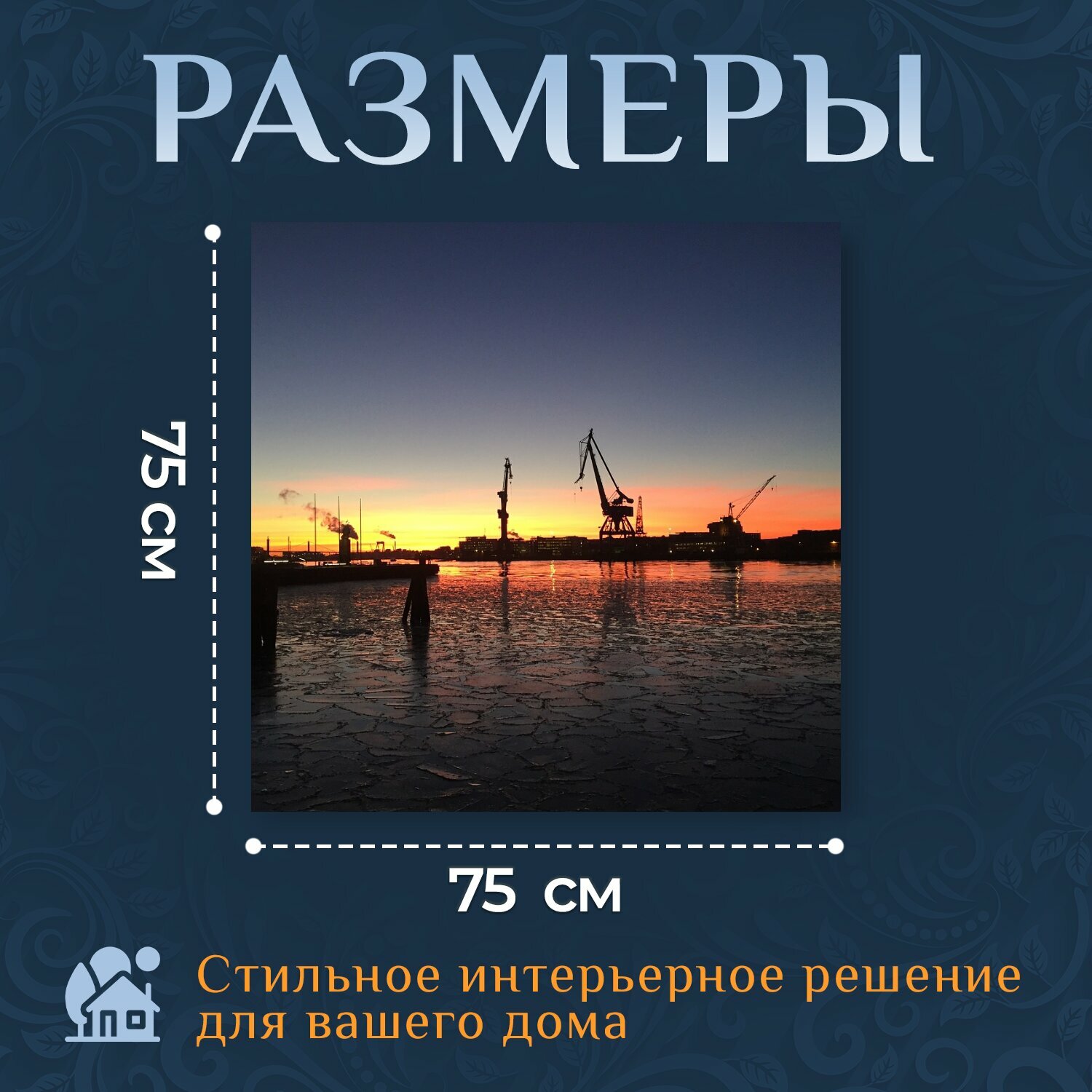 Картина на холсте "Порт, гавань, зима" на подрамнике 75х75 см. для интерьера информация:
