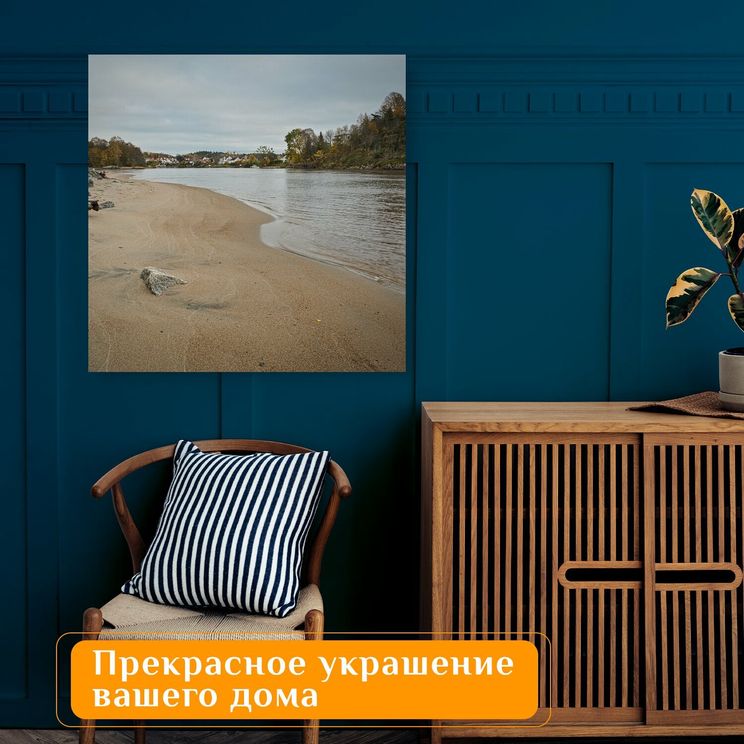 10 цен на Картина на холсте "Река, пляж, горы" на подрамнике 75х75 см. для интерьера
