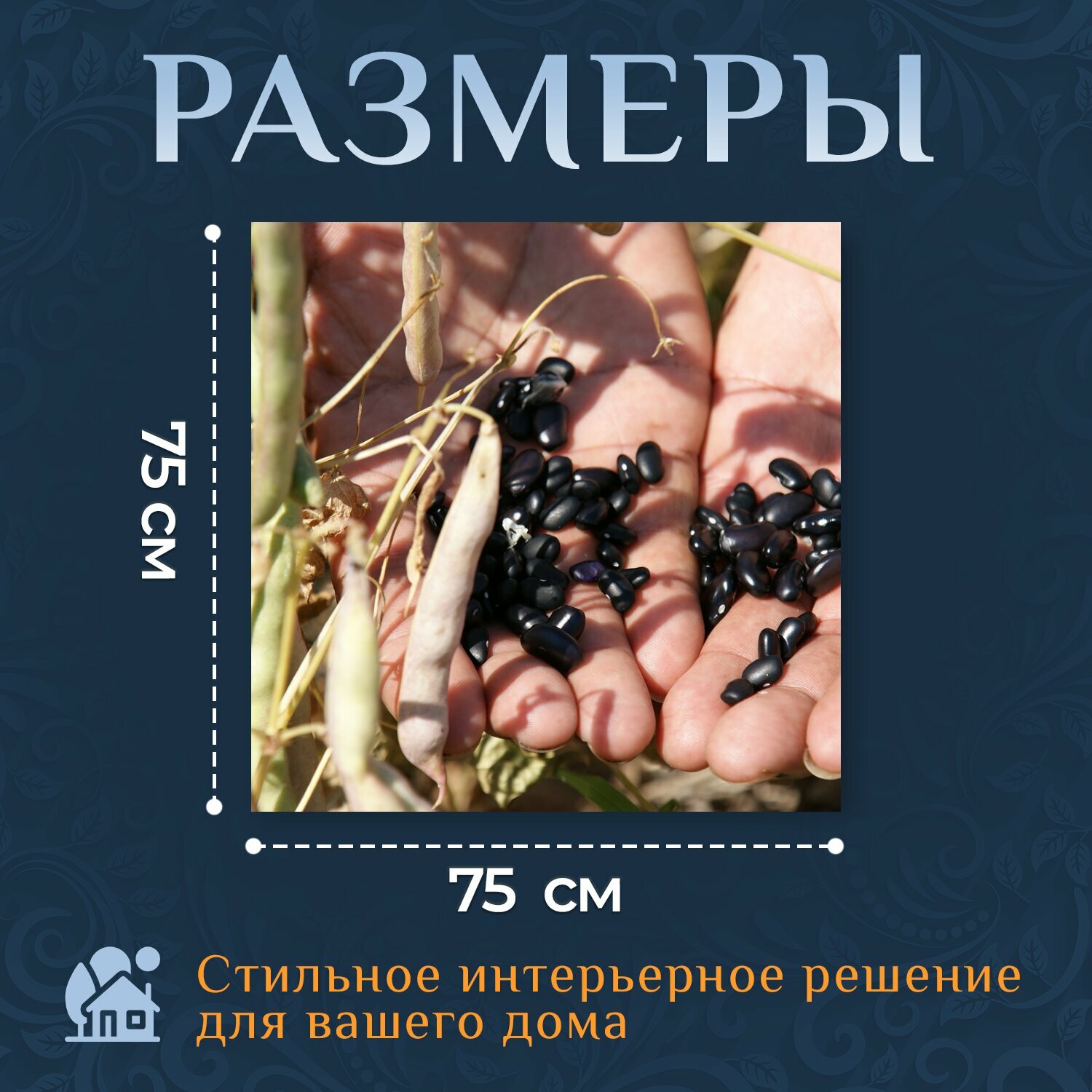 Картина на холсте "Бобы, оболочка, руки" на подрамнике 75х75 см. для интерьера информация: