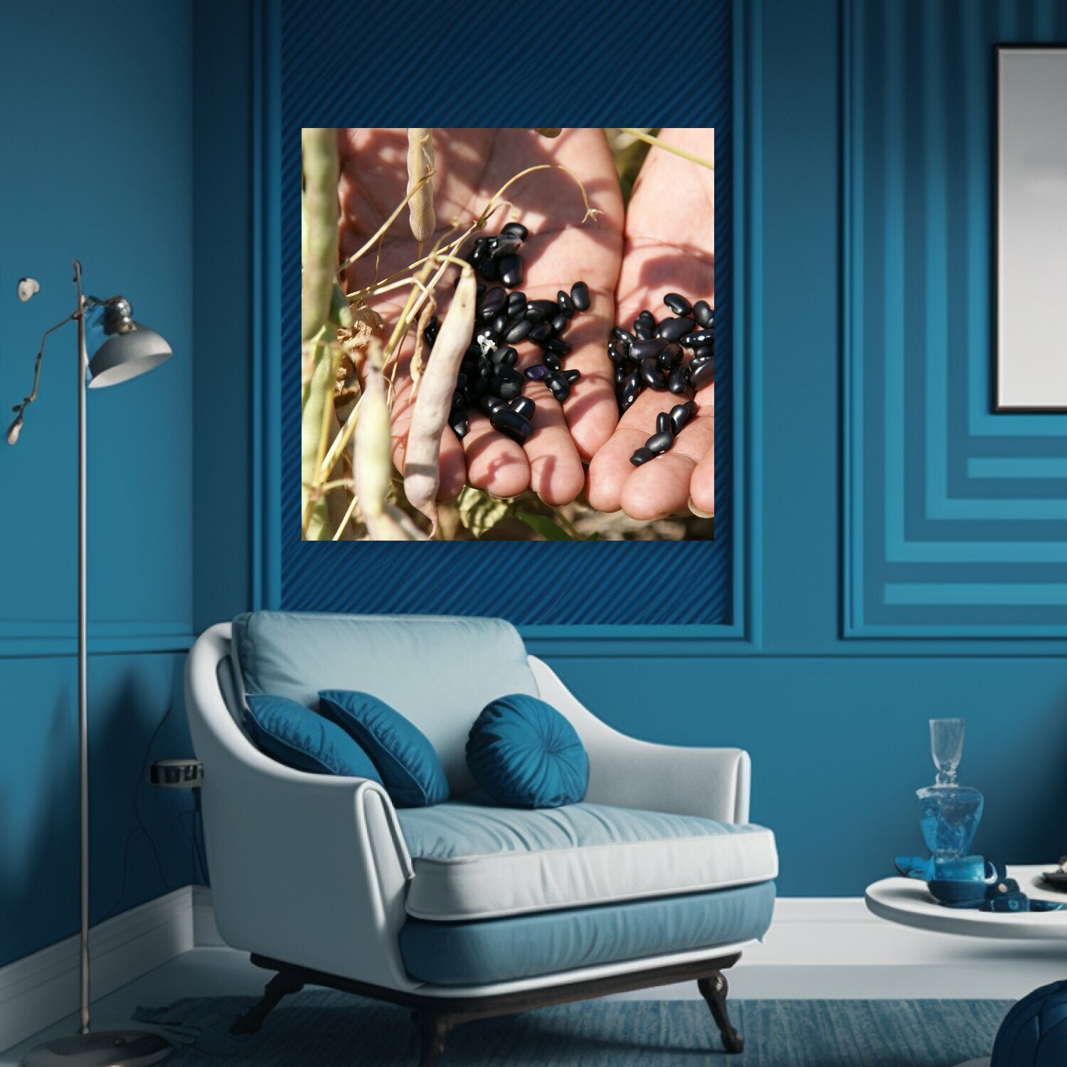 10 цен на Картина на холсте "Бобы, оболочка, руки" на подрамнике 75х75 см. для интерьера