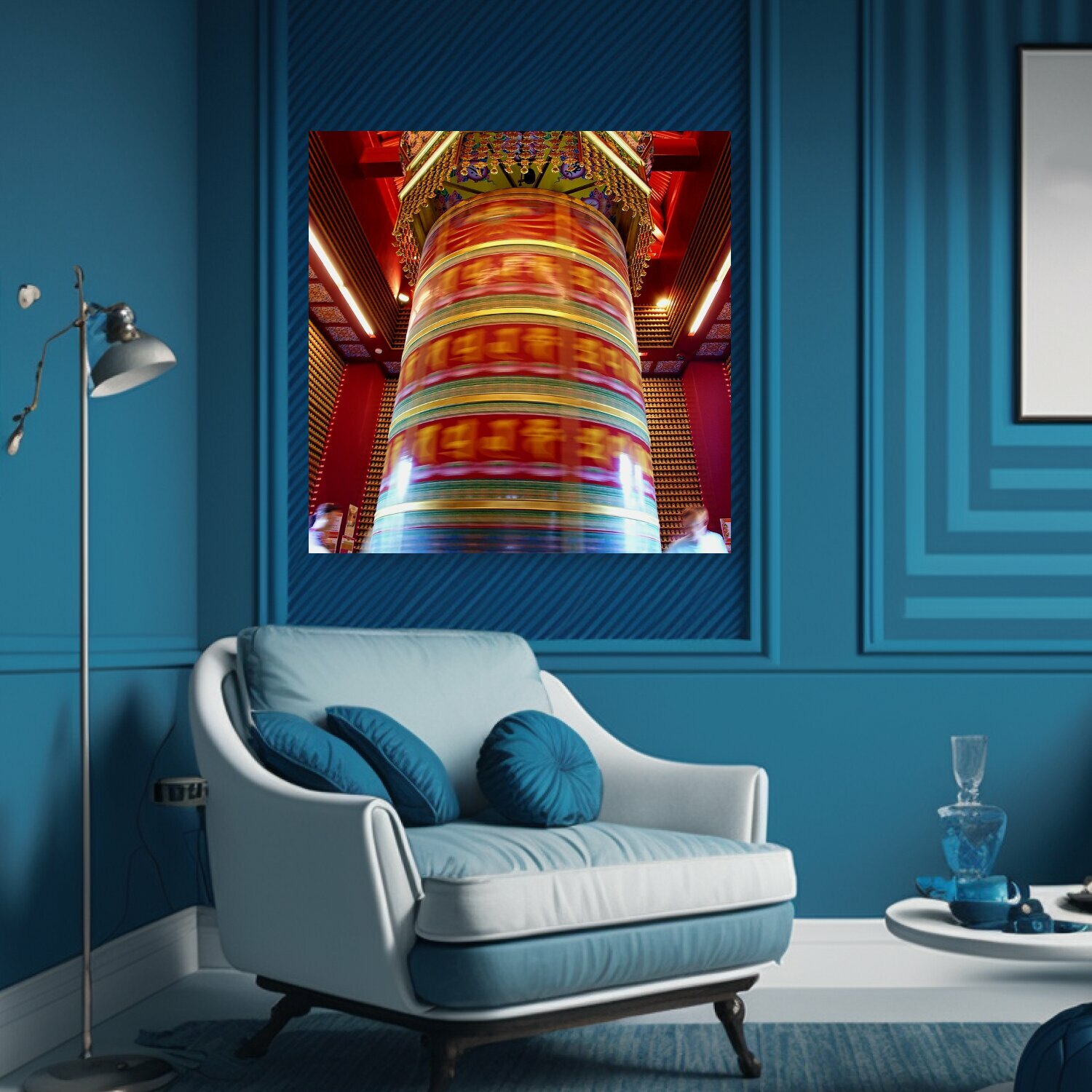 Картина на холсте "Сингапур, храм реликвии зуба будды, колесо фортуны" на подрамнике 75х75 см. для интерьера информация: