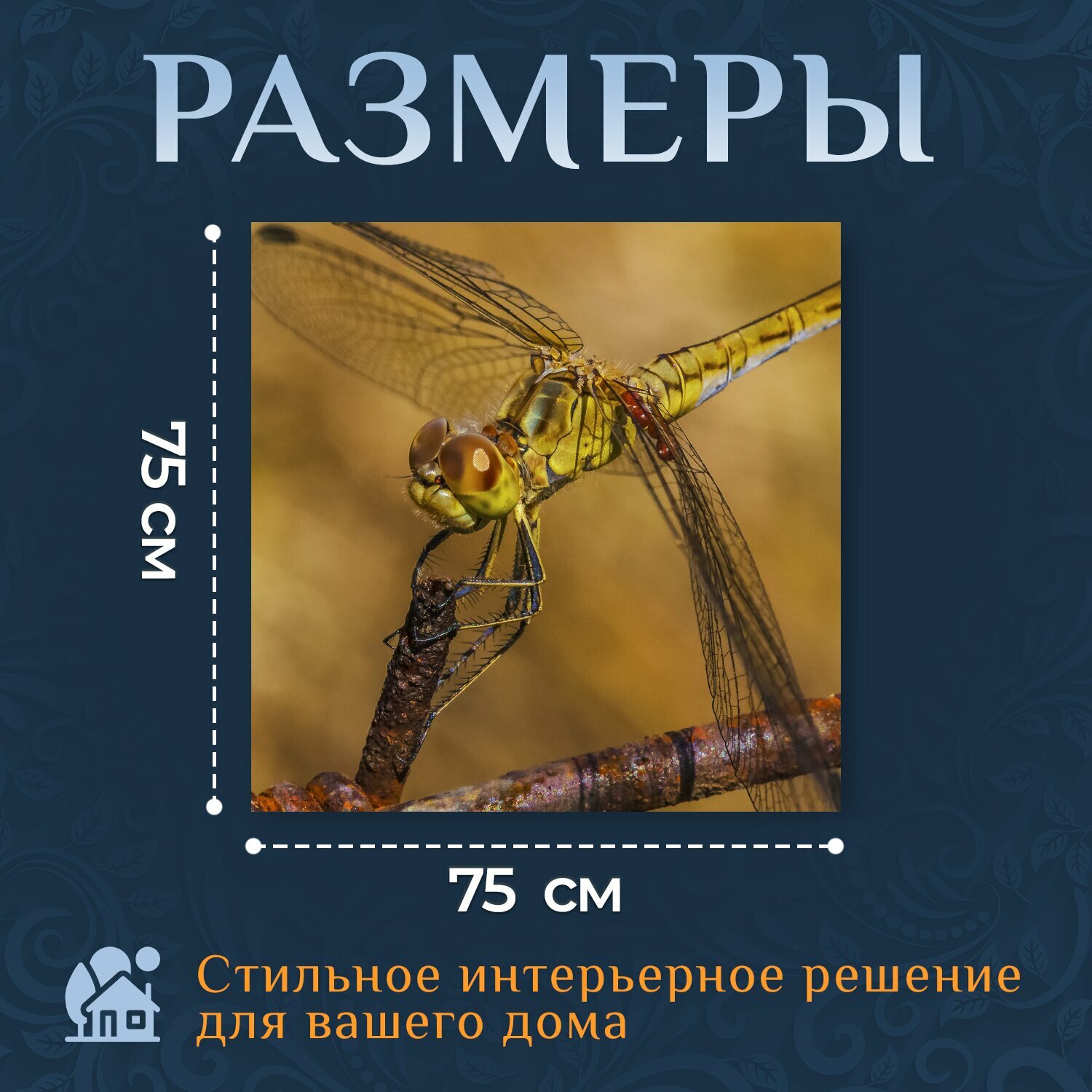 Картина на холсте "Стрекоза, глаза, сидит" на подрамнике 75х75 см. для интерьера информация:
