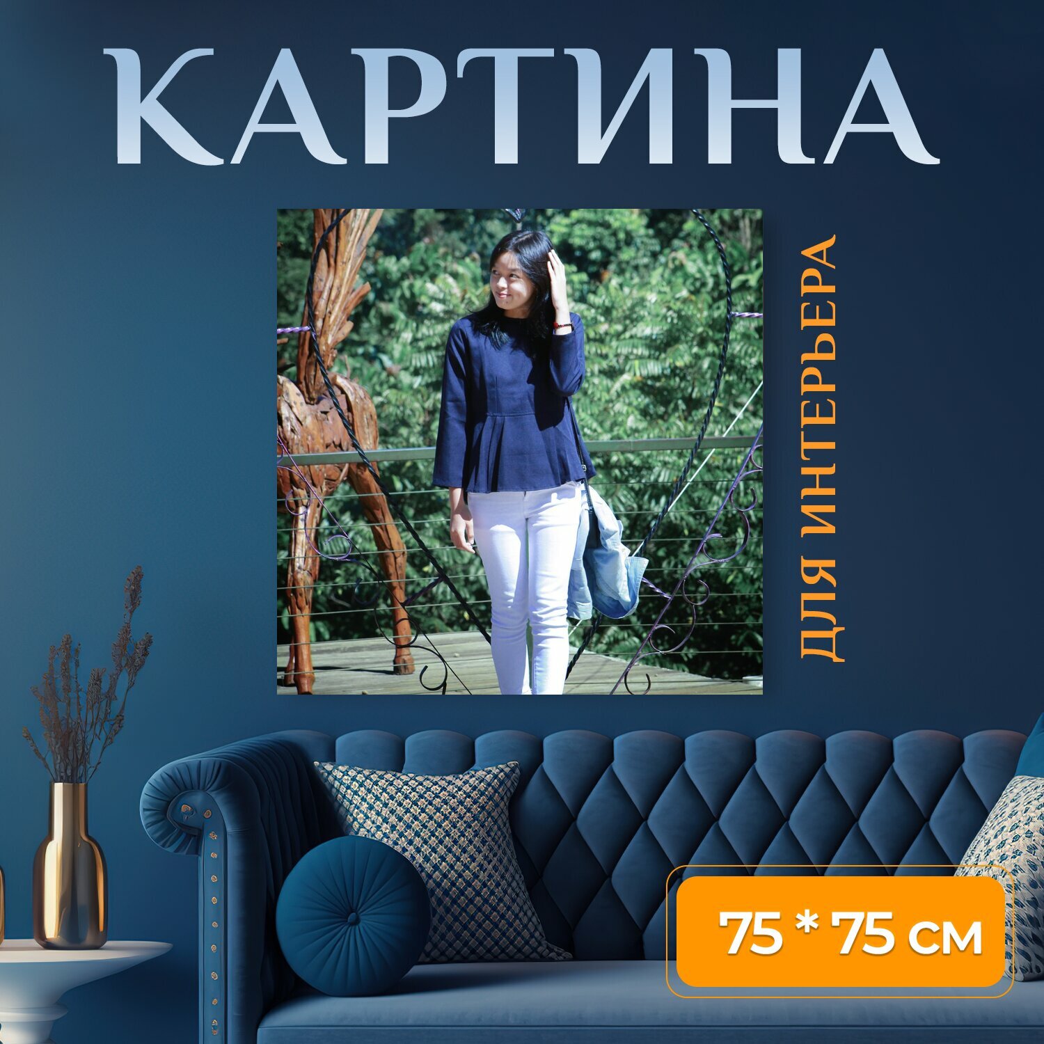 Отзывы на Картина на холсте "Девочка, белый, сумка" на подрамнике 75х75 см. для интерьера