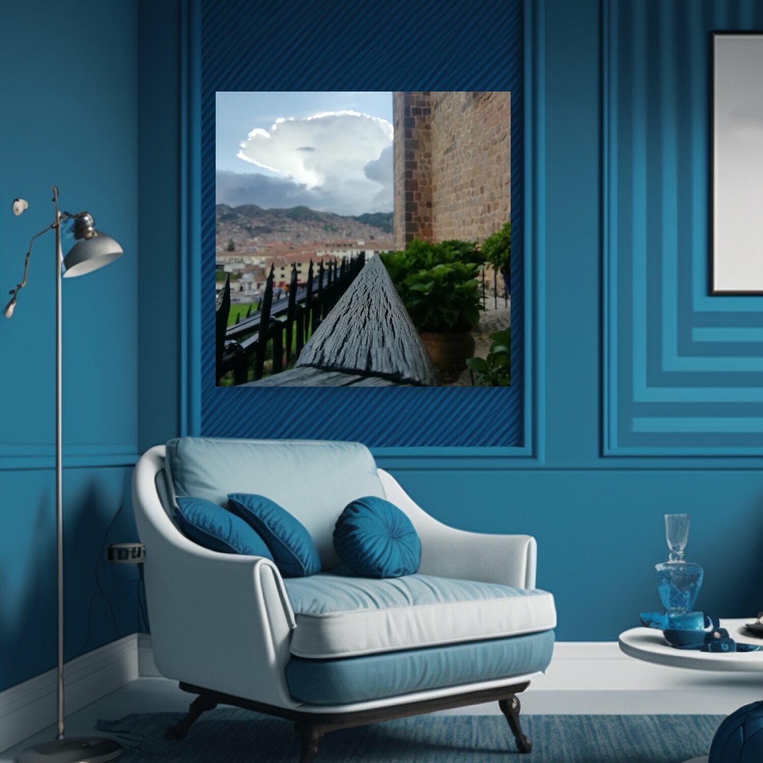 10 цен на Картина на холсте "Перила, облако, дорогой" на подрамнике 75х75 см. для интерьера