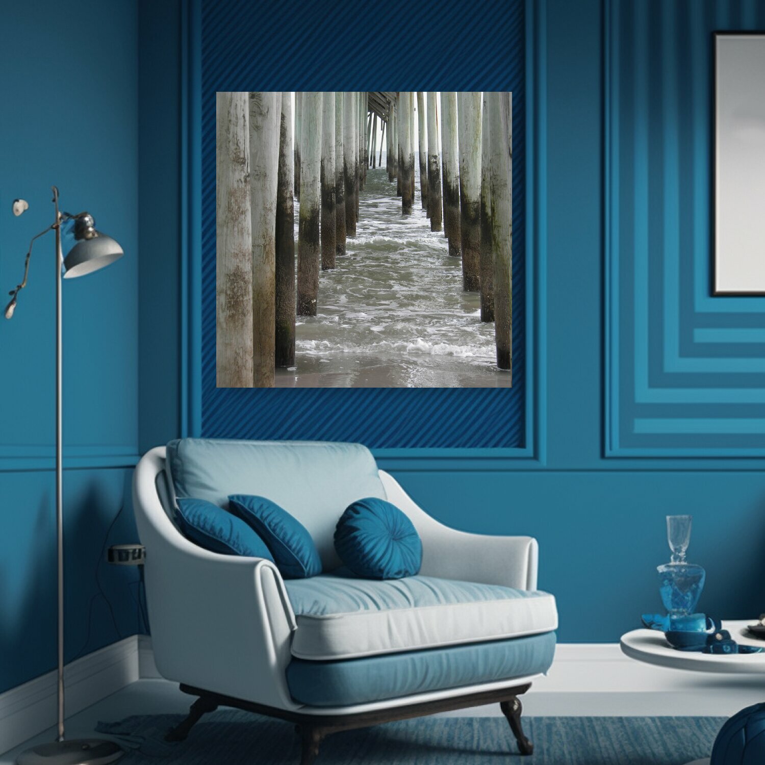 Картина на холсте "Океан, док, столбы" на подрамнике 75х75 см. для интерьера информация: