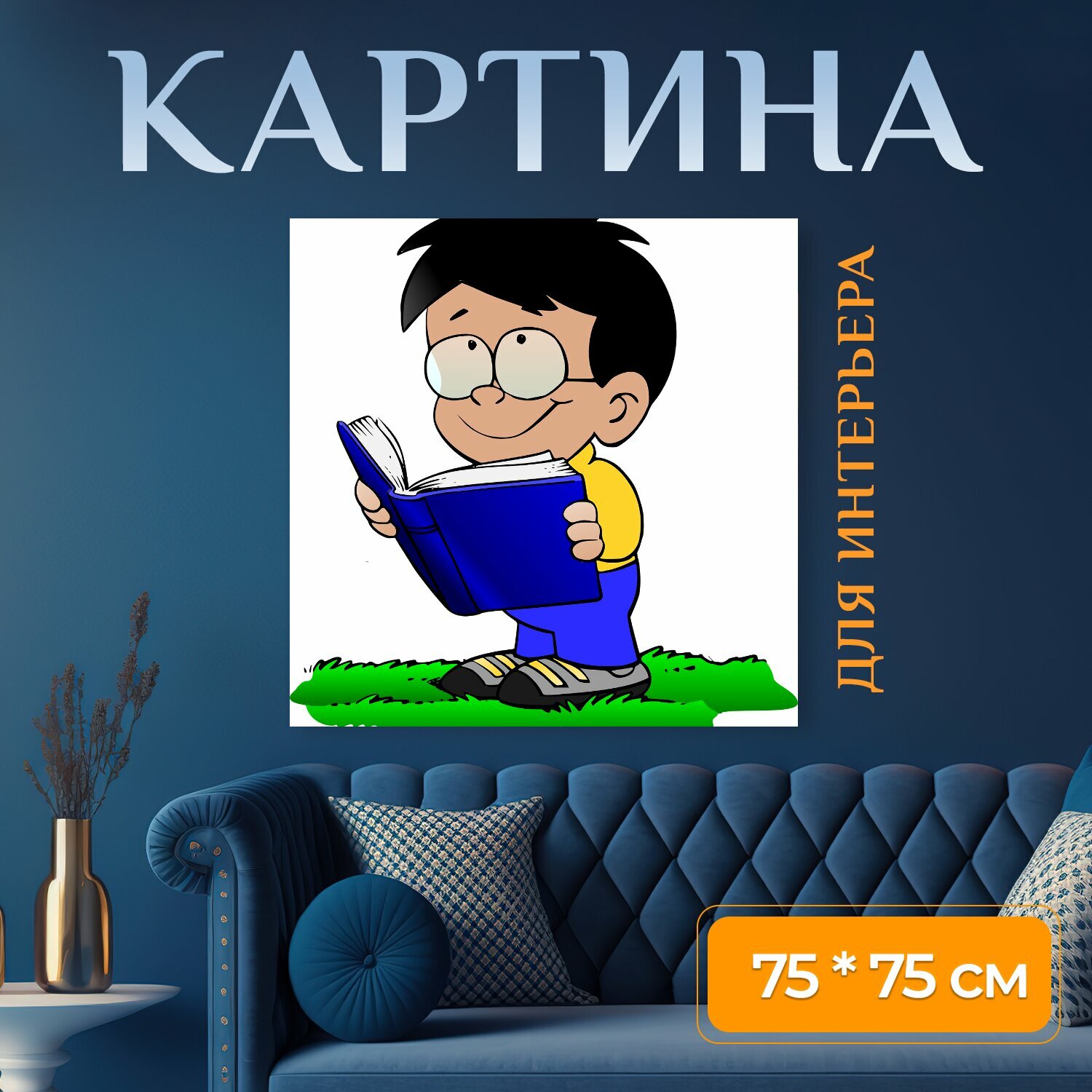 10 цен на Картина на холсте "Мальчик, очки, книга" на подрамнике 75х75 см. для интерьера