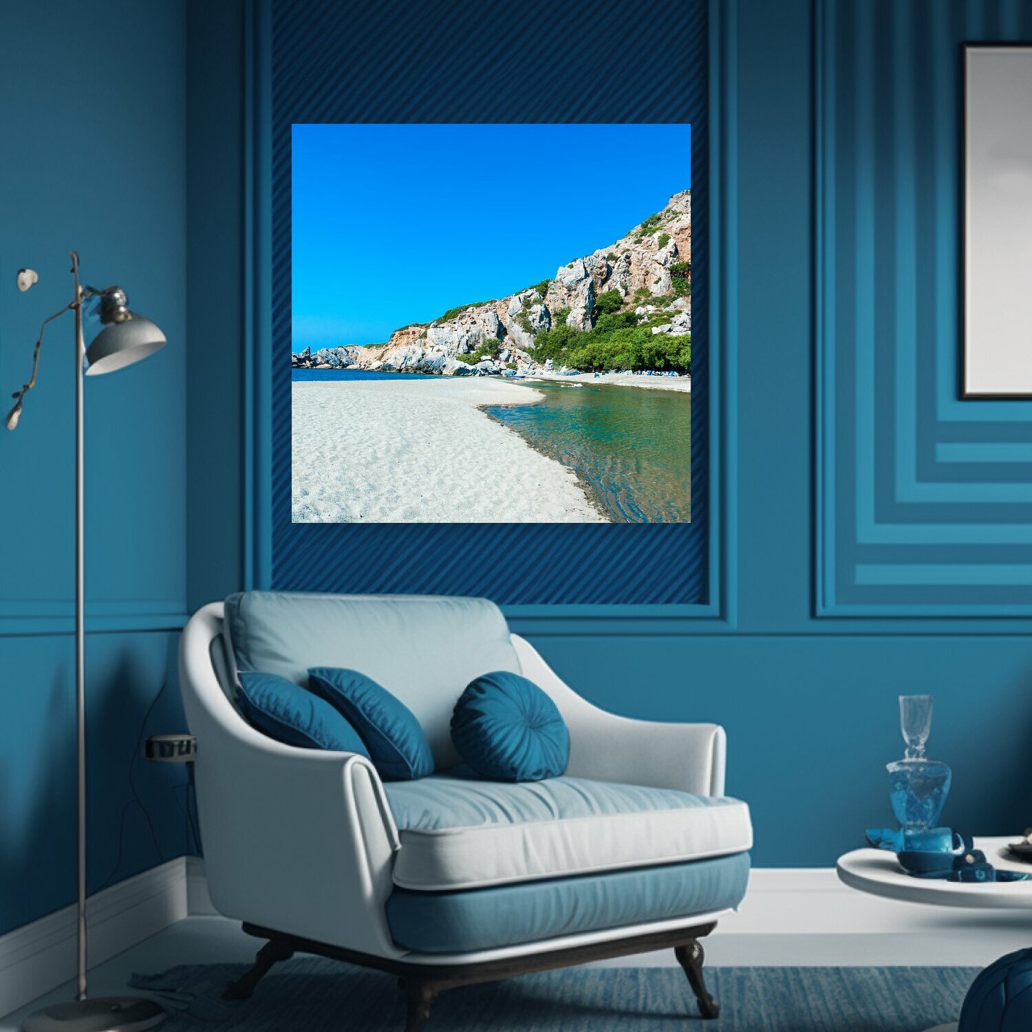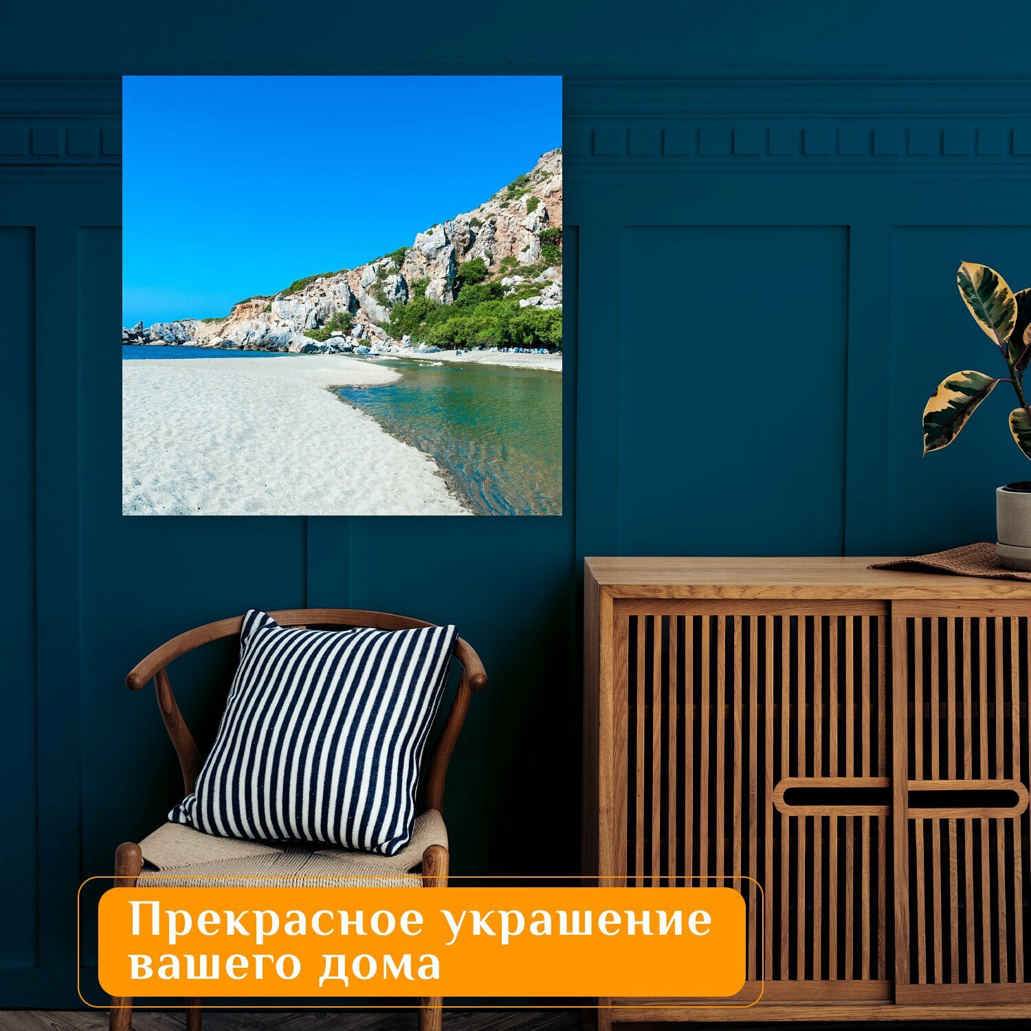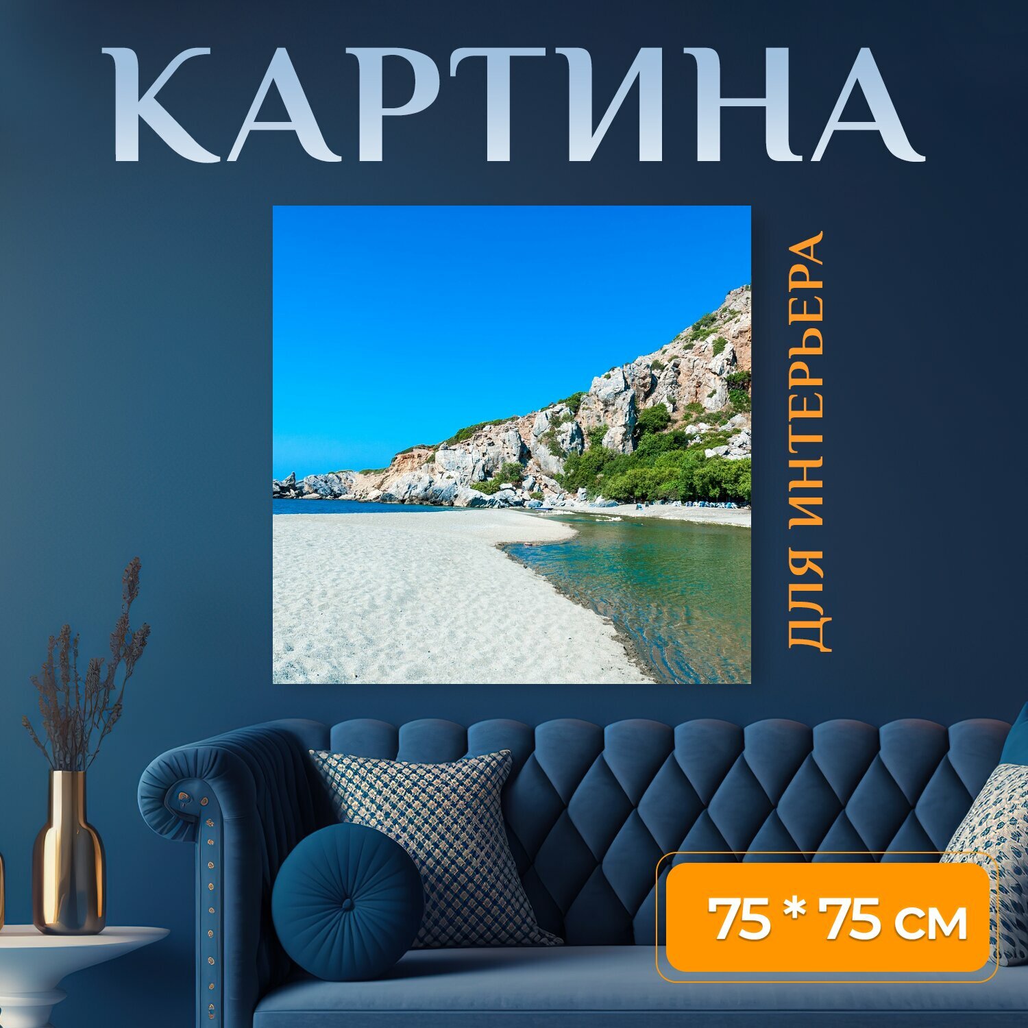 10 цен на Картина на холсте "Крот, превели, море" на подрамнике 75х75 см. для интерьера