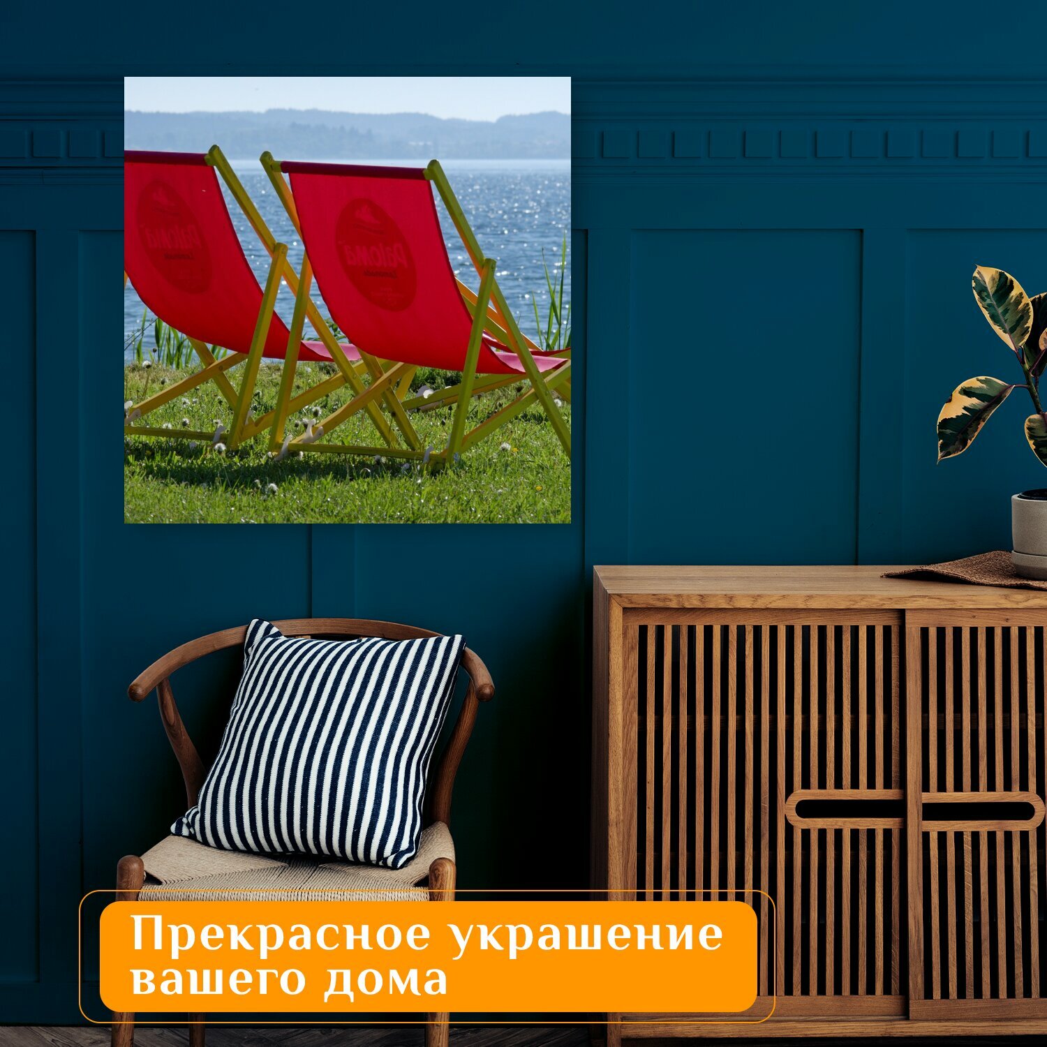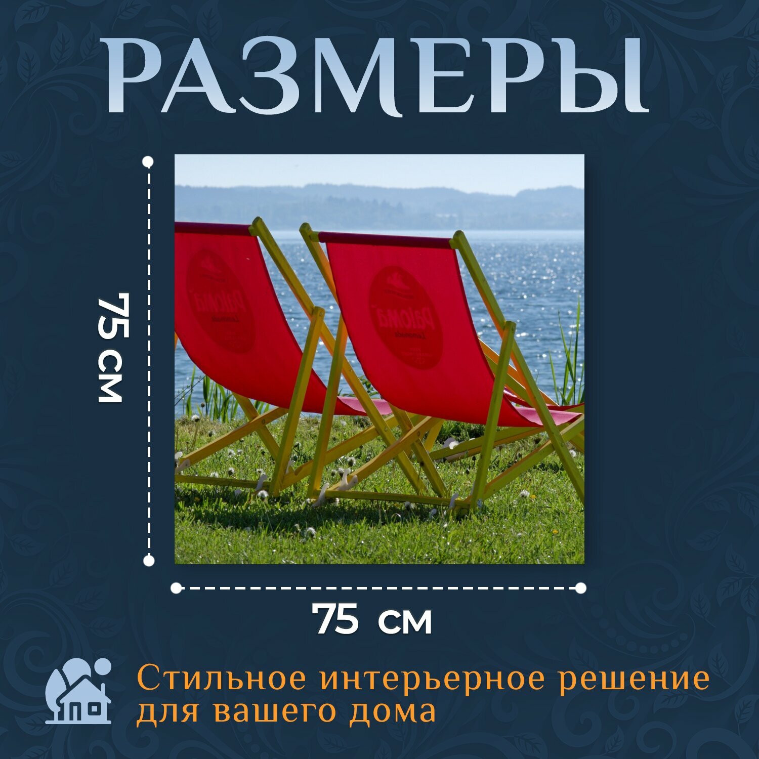 Отзывы на Картина на холсте "Шезлонг, вода, озеро" на подрамнике 75х75 см. для интерьера