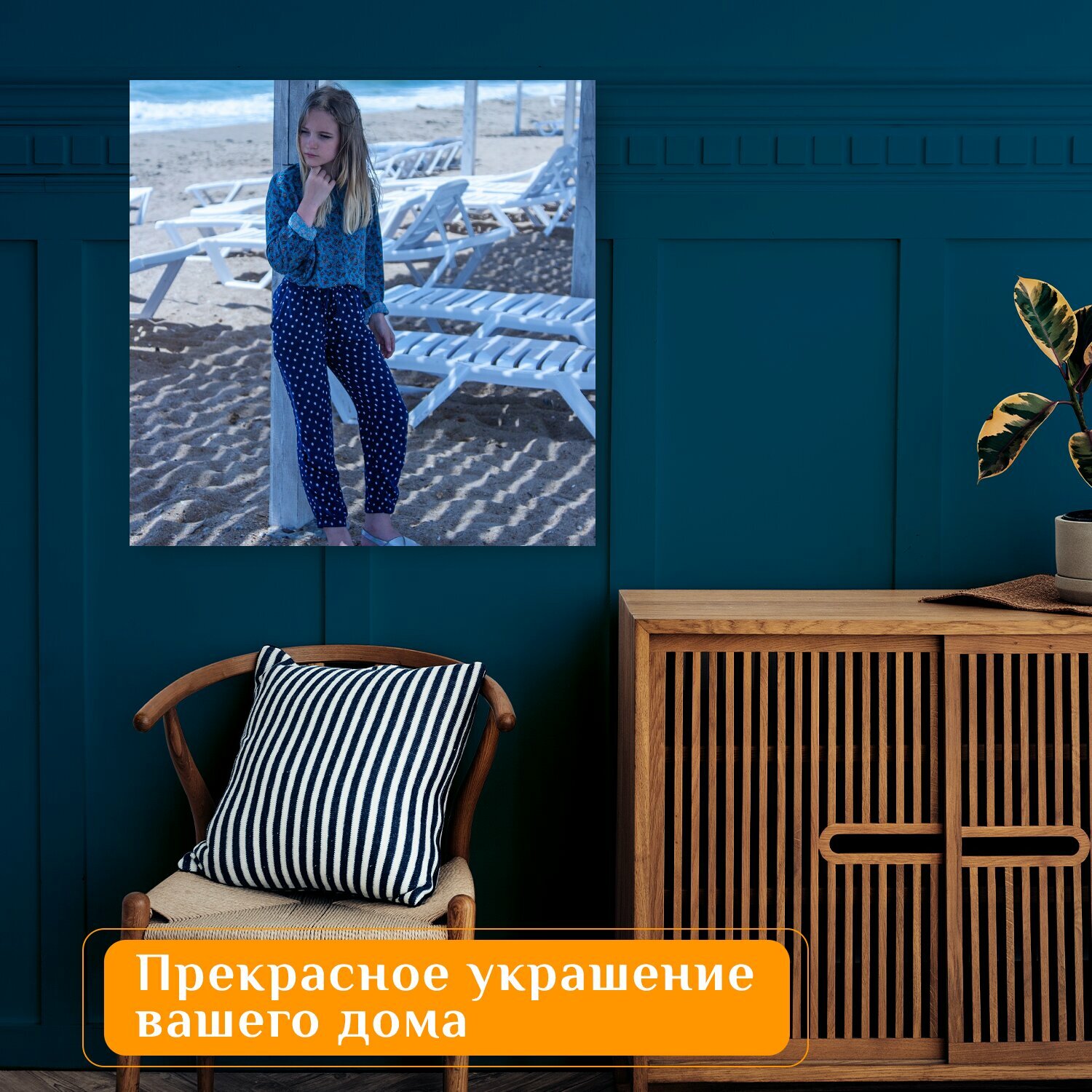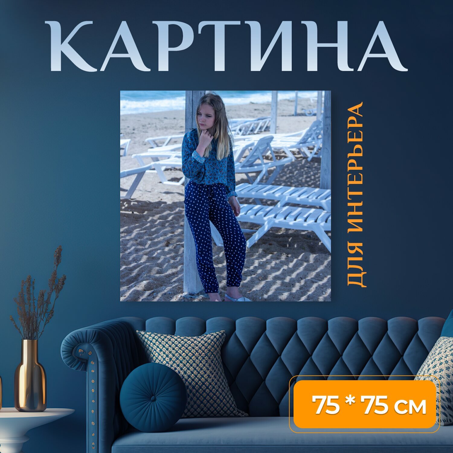 10 цен на Картина на холсте "Пляж, песок, море" на подрамнике 75х75 см. для интерьера
