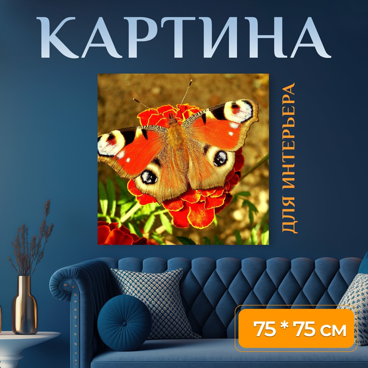 10 цен на Картина на холсте "Природа, бабочки дневные, насекомое" на подрамнике 75х75 см. для интерьера