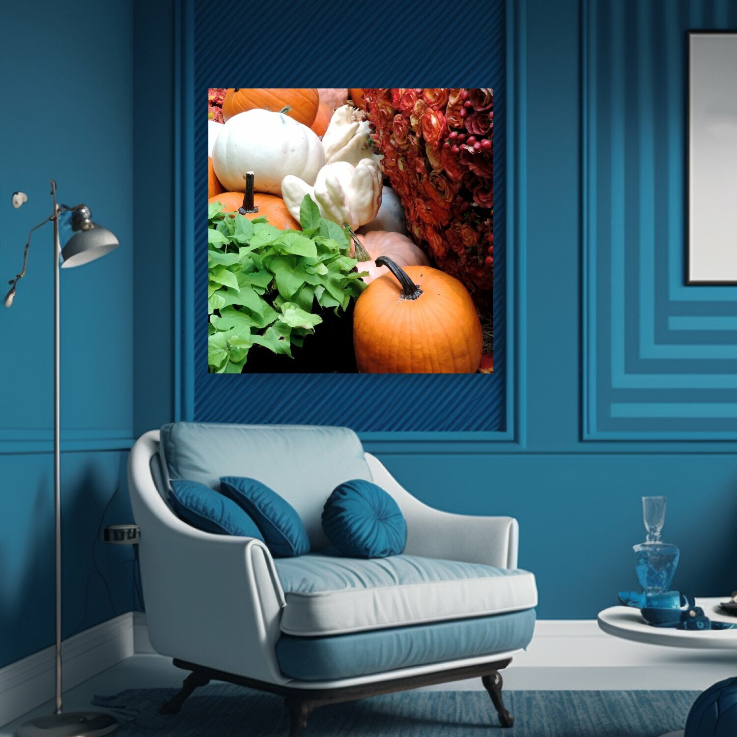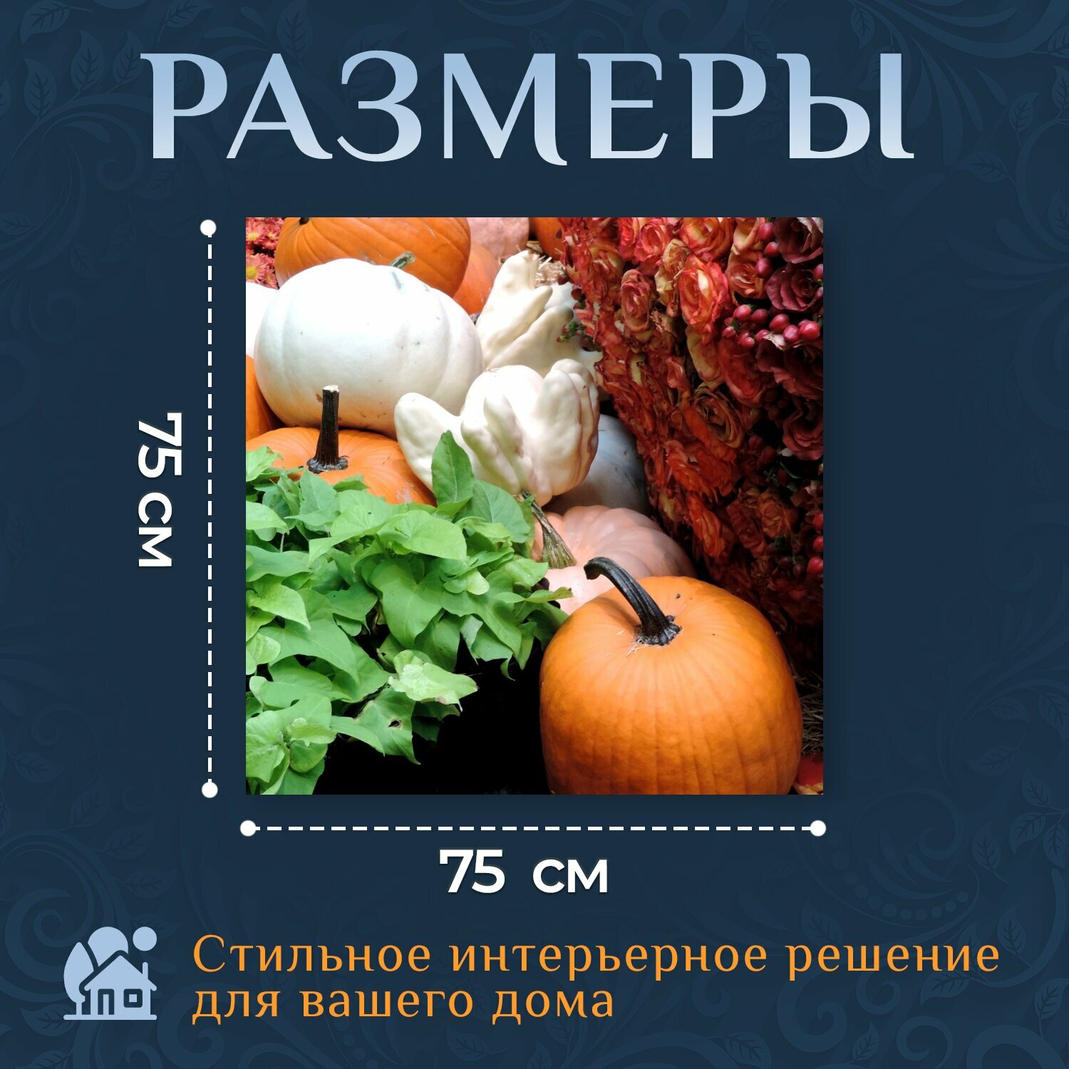 10 цен на Картина на холсте "Тыквенные патч, осенний урожай, осень" на подрамнике 75х75 см. для интерьера
